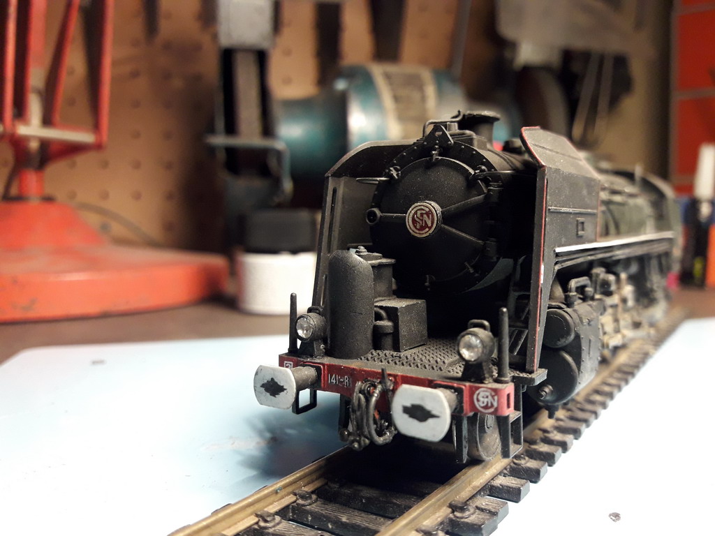 Je profite du temps sec pou faire des travaux extérieurs. Donc mon réseau est en stand by. Comme vous le constatez sur mon fil "mon parc machine" je suis passé de la mise à niveau de la 141P102 de Jouef Champagnole à la 141R1264 de 1969 pour sa 3ème révision générale. Elle n'aura pas le niveau d'une HJ mais s'en approchera un peu plus. J'espère que les pare-fumées, la nourrice de vapeur et la cheminée Kylchap commandés chez MT arriveront avant que le COVID19 me prenne...Déjà 15 jours que j'attends