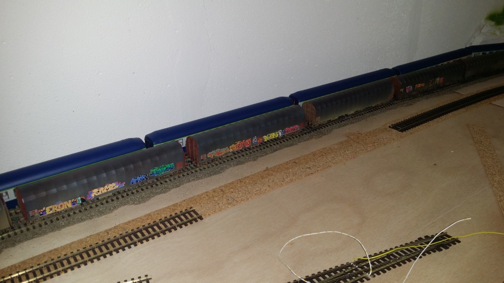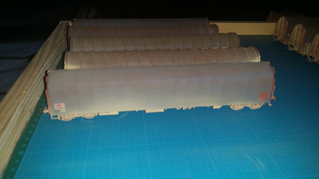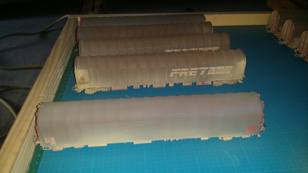 Puis application d'un beige pour donner un coté poussière aux wagons