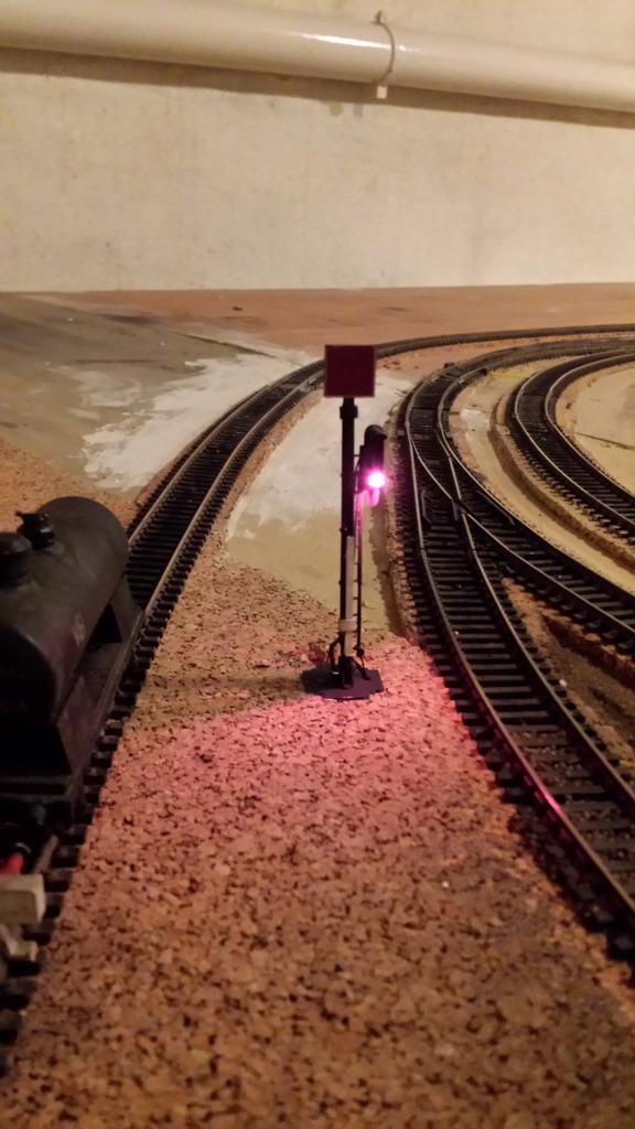 En fait j'ai eu la réponse sur un autre forum avec un gars sympa qui m'a corrigé mon schéma. Le câblage des lampes ne passe pas par la station. J'en tiendrai compte pour mes installations futures. Là je ne peux plus modifier sans soulever le plateau du dépôt. Comme cela fonctionne bien avec un appuis sec, (si faiblard, le relais reste à la traîne) je laisse mon carré violet en l'état.