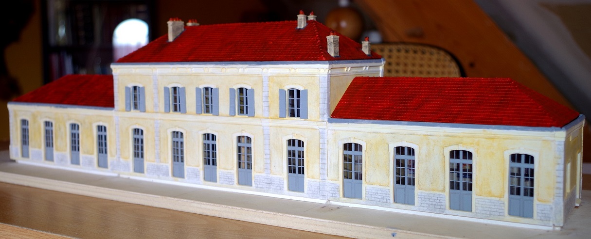 Lors du dernier Rail Expo au dôme de Villebon en 2011, j'ai acheté la grande gare PLM 5 portes et ses annexes en pierre synthétique chez MVB (Maquettes Voies Bâtiments). Je l'ai laissée dormir dans une armoire jusqu'à ce jour car je n'étais pas prêt à l'installer.