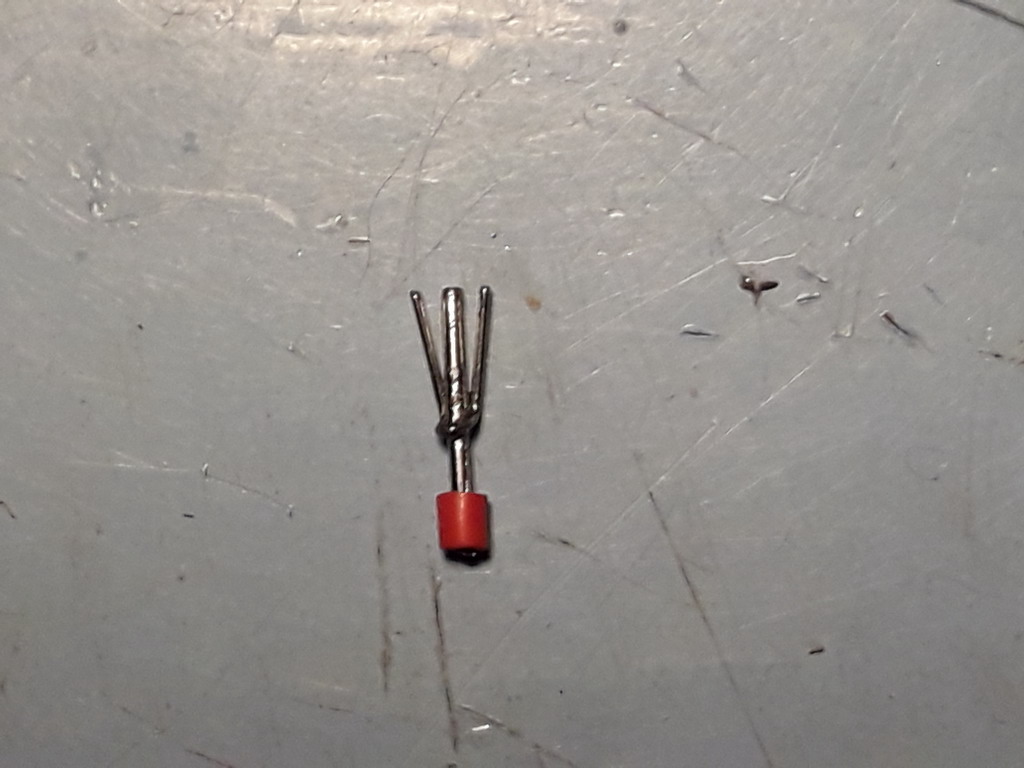 Je n'ai pas encore coller mon vitrage du devant de la cabine. Après un essais sur les phares, la colle semble épaisse et ne sèche pas rapidement. Je n'ai pas lu de retour d'utilisation de cette colle sur le net. Il faut que je trouve le moyen de caller la vitre pendant son séchage. comme je la monte de l'extérieur , il ne faut pas qu'elle tombe à l'intérieur de la cabine en provoquant des dégâts. En attendant, j'ai fabriqué la dernière pièce de la machine: la prise Flaman. Du fil électrique dénudé, une tige de 0.8 tiré d'un trombone et de la corde de guitare 0.09 " :siffle: