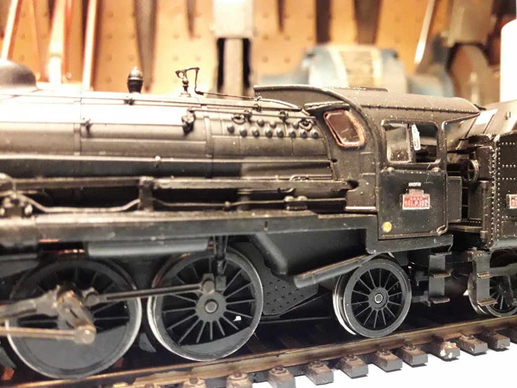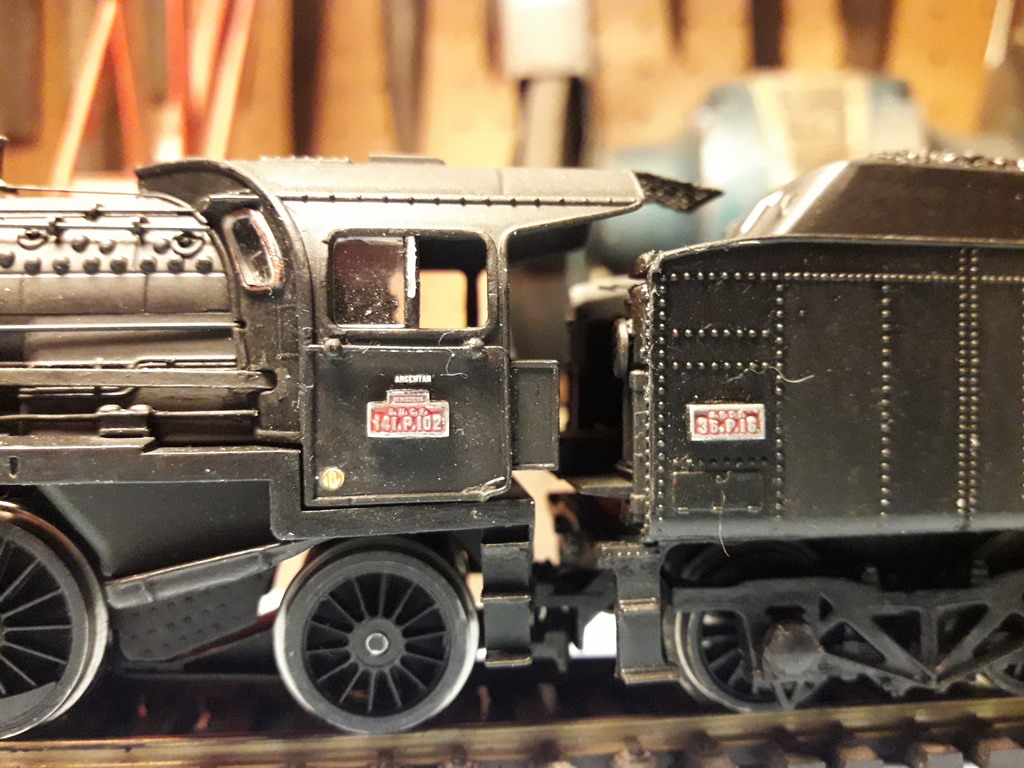 Dernière opération avant le montage des pare-fumées. Pose des plaques Clarel amincies, des déflecteurs de verre (découpés dans un couvercle de boite) et apposition du nom du dépôt Argentan (hyper minuscule). J'ai vu que parfois le nom du dépôt était apposé aussi sur le tender. Je vais voir...Il y a un site sur ce dépôt.