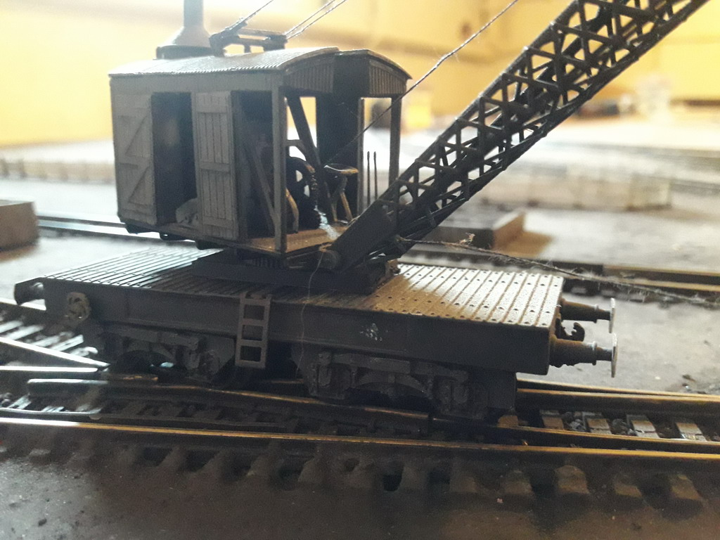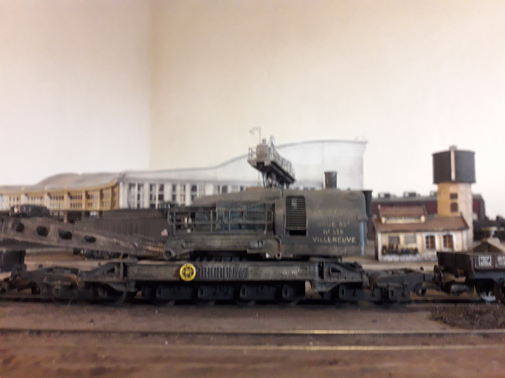 Retour sur la grue à combustible. Elle a disparu de ce forum pour cause de changement de support du site, un zap de 9 mois.... C'était sa construction pas à pas ...Le principe, des grues à chenille US de l'après guerre monté sur châssis ferroviaire de tender 20G. C'est la grue type Bondy. J'ai utilisé les plans de X. JACQUET pour m'en inspirer. Ingrédients: grue ERIE à vapeur de Jordan Highway Miniatures (30€). Le kit en plastique est peu cher, deux bogies de tender 18 Jouef Champagnole et les deux extrémités d'un plat surbaissé Jouef de la première heure. La benne preneuse est articulée et construite sur les plans de X. JACQUET parus dans RMF. Matériau : carte de paiement HS et épingles de couturière. Pour ceux que cela intéresse j'ai fait un manuel, c'est gratos.