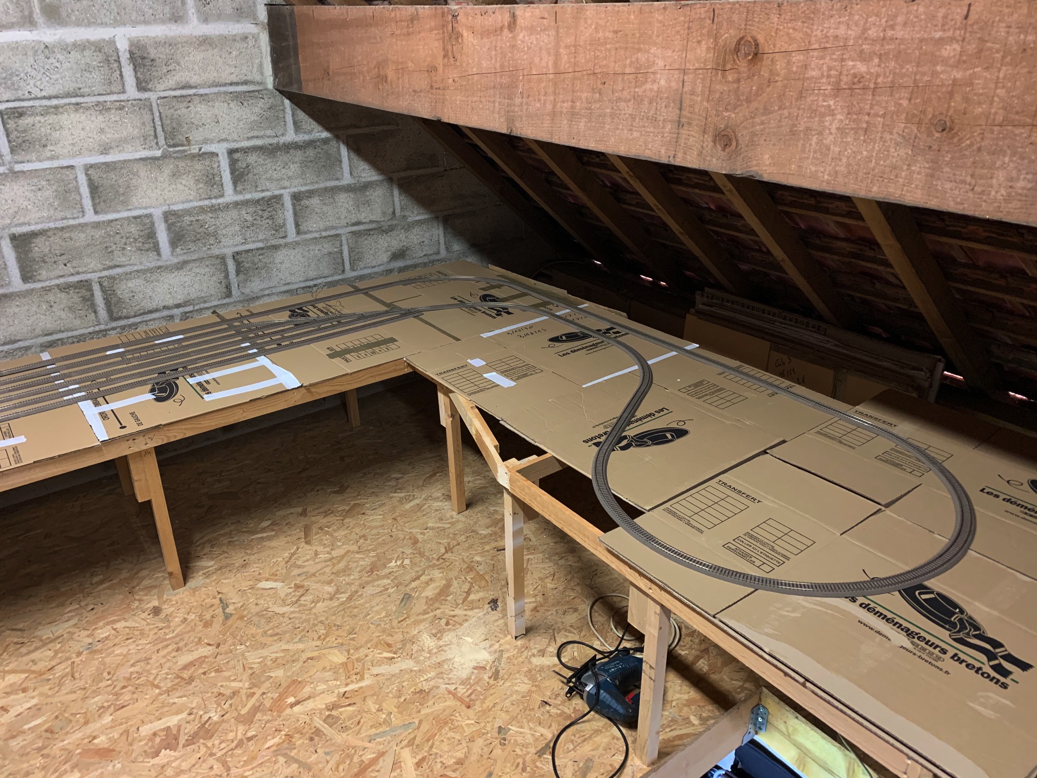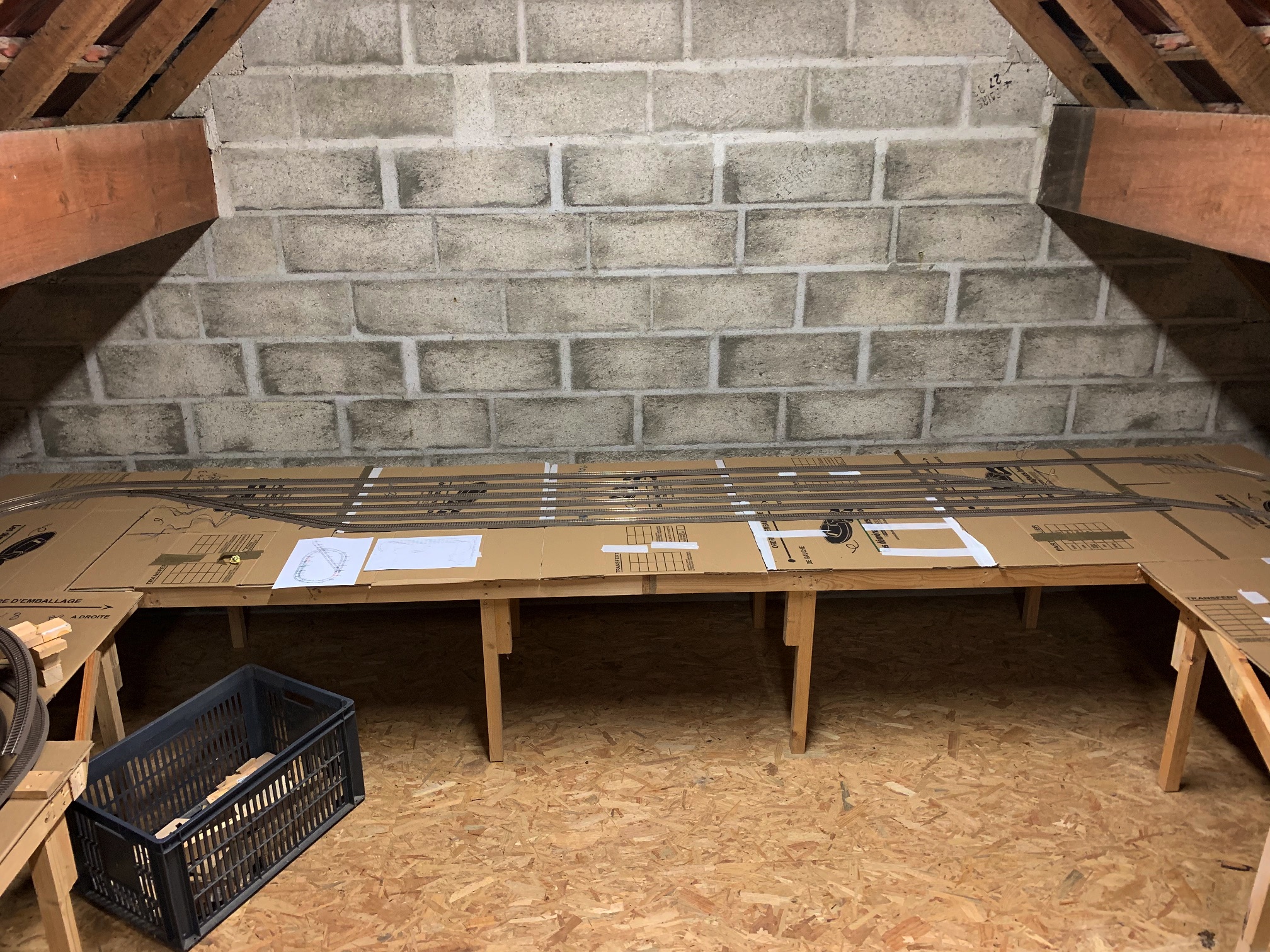 Pendant cette période de confinement, et en attendant la livraison des panneaux d'isolation de mon garage j''ai terminé la première partie des 6 modules (les socles et les supports inférieurs) @Christou: voila la plus grande de mes rames (aujourd'hui bien sur), j'ai fait un montage "à blanc" sur des cartons pour bien visualiser les possibilités A suivre....