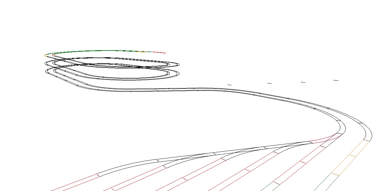 Sur mon réseau j'ai une courbe serrée à 180 degré et de 55 cm de rayon sur une pente à 2,5 % .