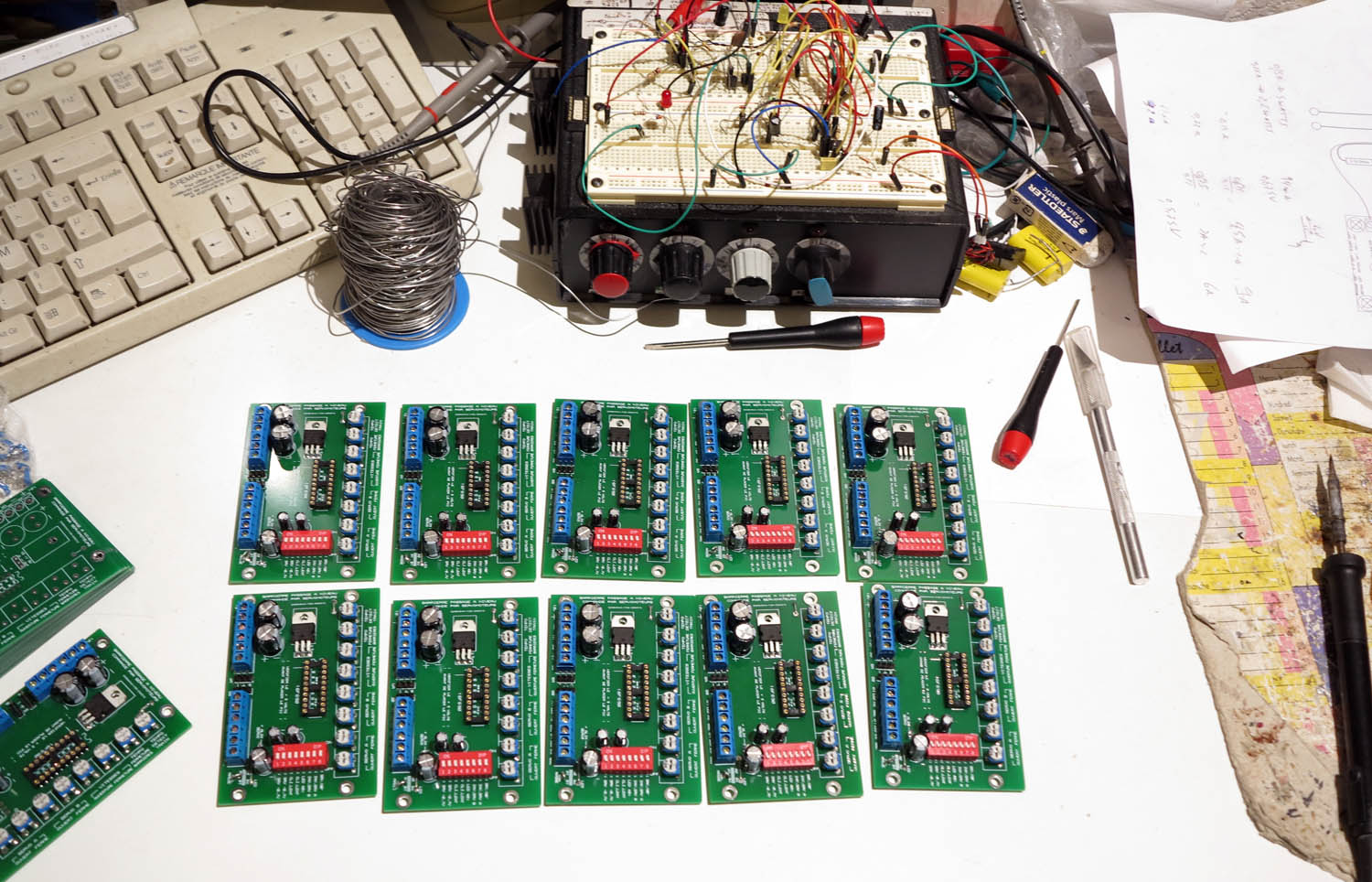 J'ai fini d'en monter une dizaine, il ne reste plus qu'à programmer le PIC 16F690 et de tester les montages.