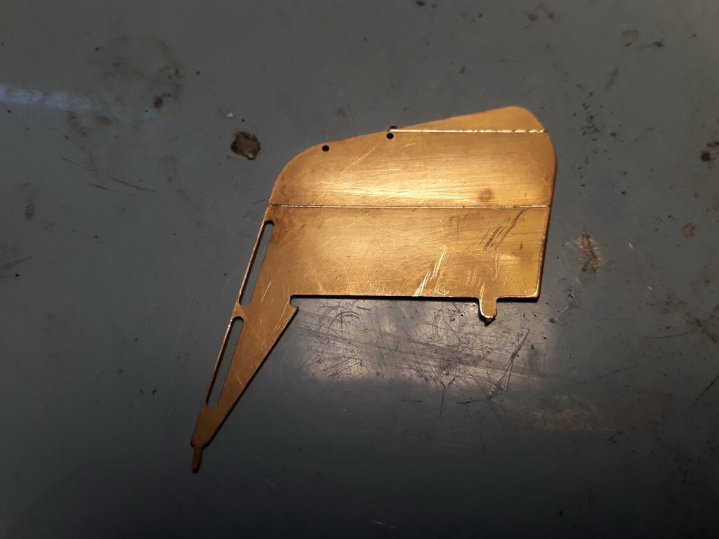 J'attaque les écrans pare-fumée MT. Traçage: sur la face verso 10mm à partir du bas pour la première pliure avec un biais de 0.8mm environ puis 19 mm à la 2ème pliure à partir du bas mais cette fois ci parallèle à l'arrête basse (parallèle au tablier)