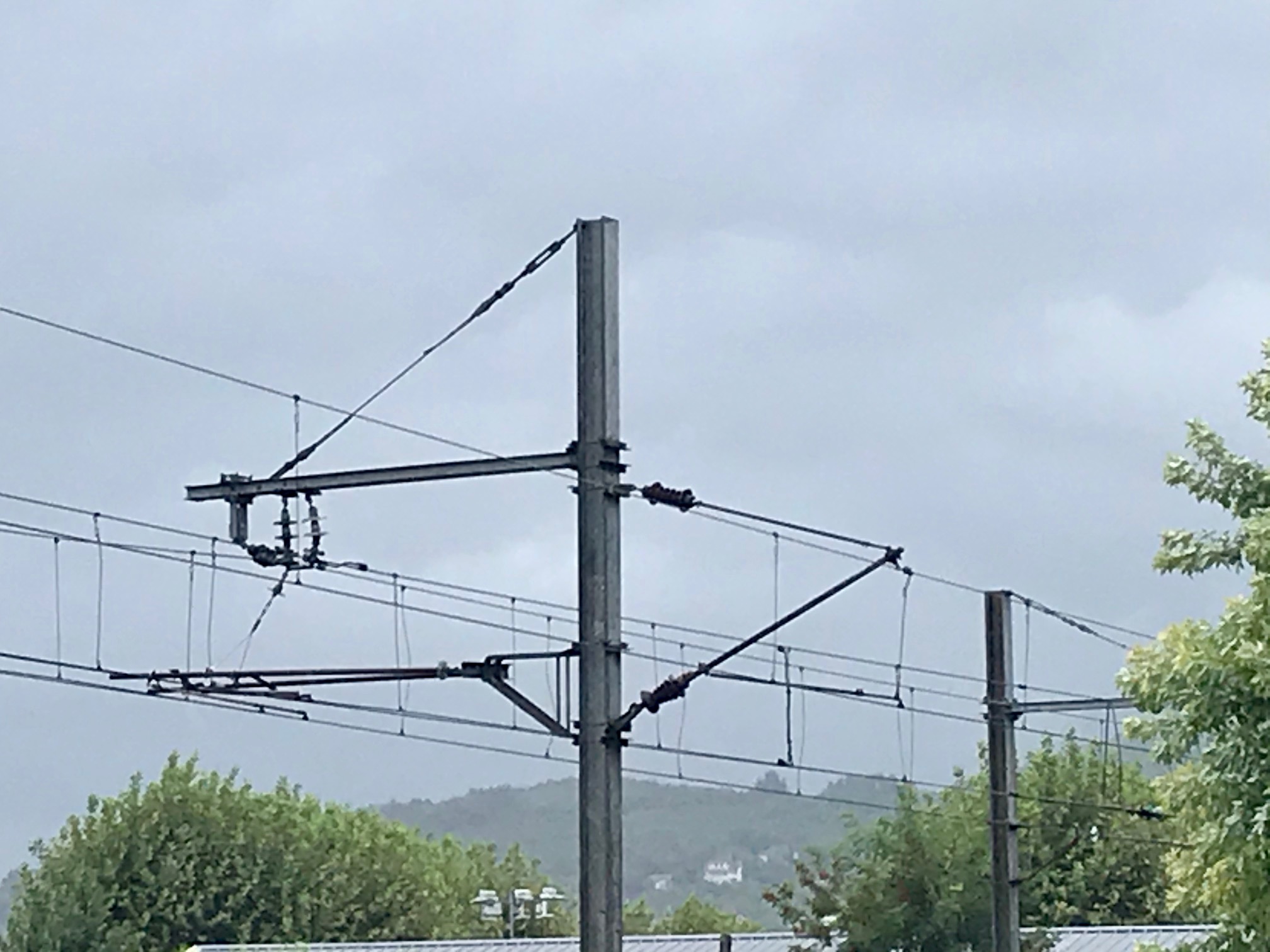 La photo initiale du quiz est un poteau portant à gauche, l'armement 1,5 kV et à droite, l'armement 25 kV 50Hz