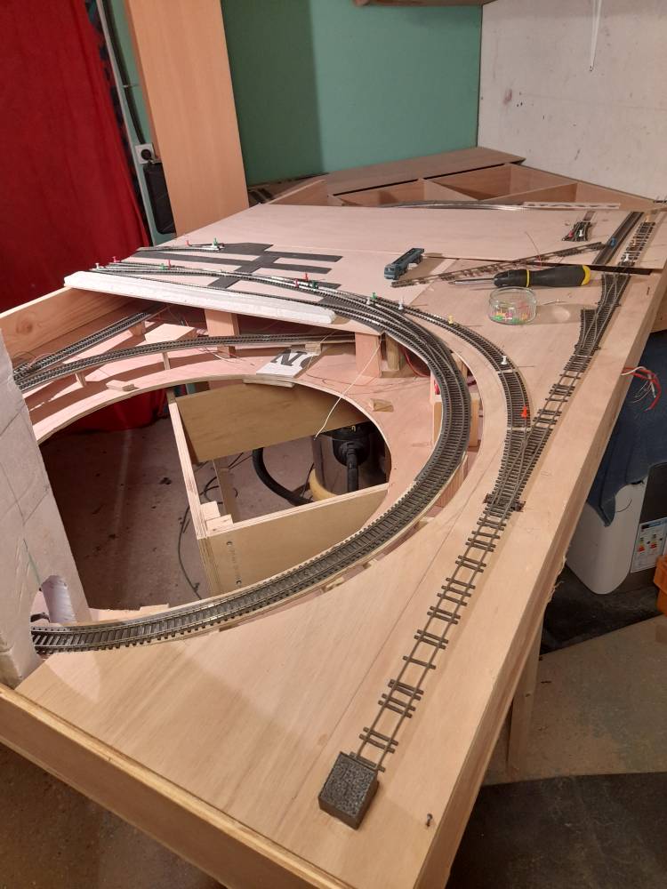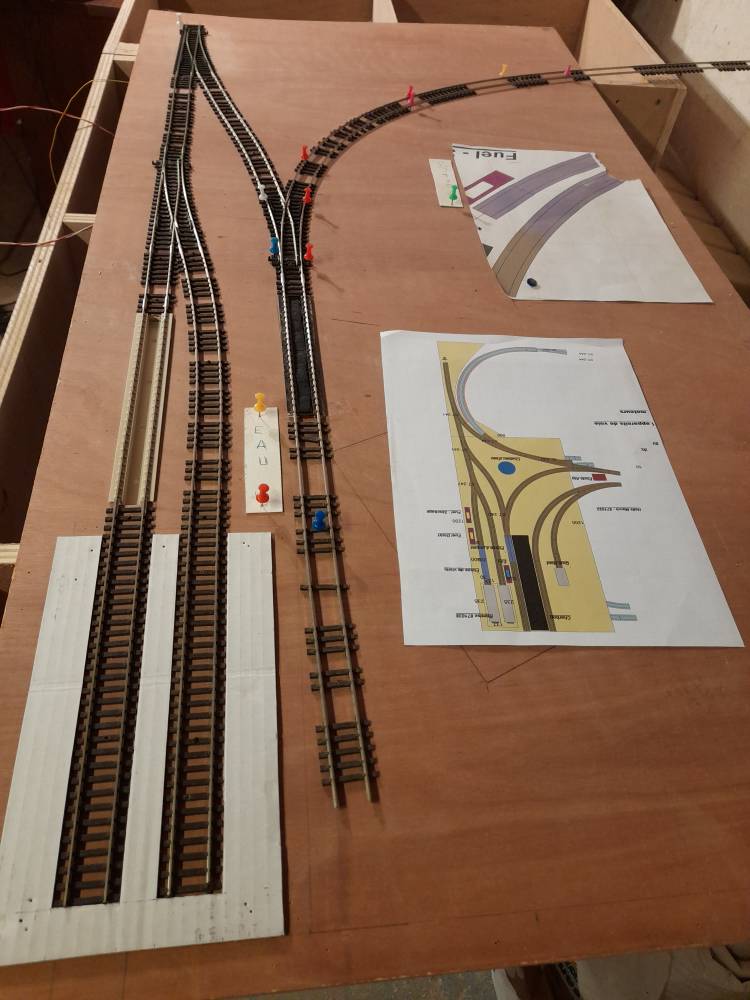Je crée un réseau "initiatique" pour mes petits enfants avec lesquels j'aimerais partagé ma passion. Donc, tant qu'à faire, autant être un peu réaliste néanmoins. La structure est en contreplaqué de 10mm, il est composé de 3 "modules pour le transport à savoir 2000x1200 + 600x1200 + 250x700. (J'ai un pick-up donc pas de problème)
