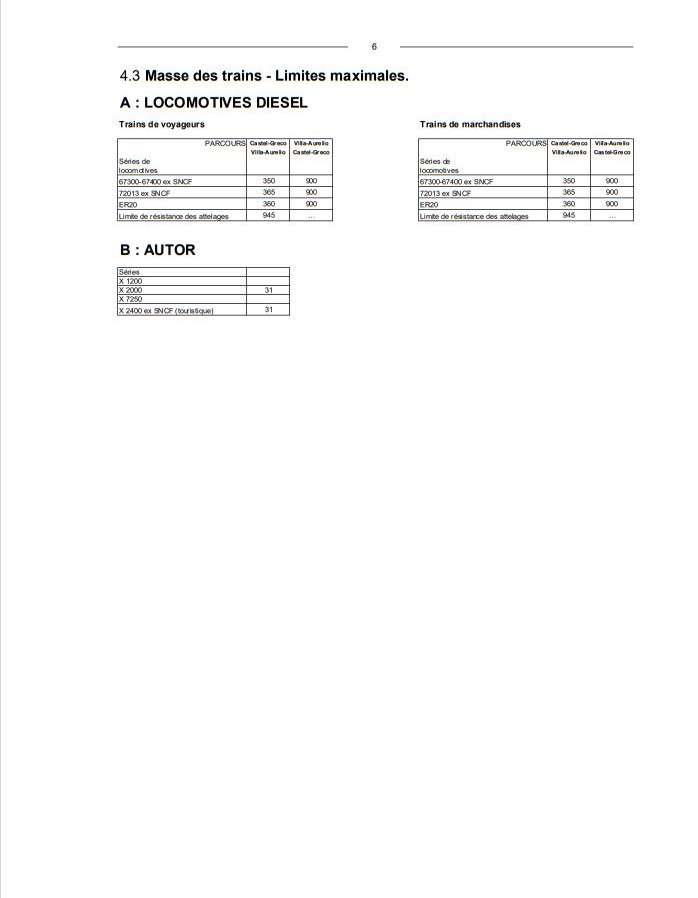 Ainsi, les RT (Renseignements Techniques) offrent une vision globale sur la ligne où se trouve la gare de Casa-Alba, avec informations sur les points kilométriques, l'équipement de la ligne (voies principales), les différents paramètres techniques pour une circulation en toute sécurité...
