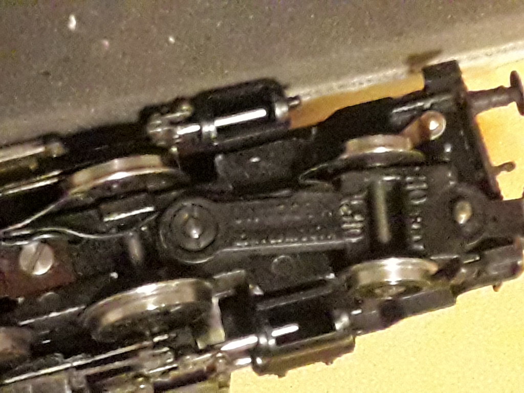 Les premiers essais sont concluants. J'avais inversé les pôles. Il a fallu rectifier. Le kit est un moteur lent. Elle roule silencieusement, le couple est plus élevé mais le manque d'adhérence est patent en rampe. elle est tout de même capable de tracter une trentaine de wagons en palier (60 essieux). Il n'y a plus d'effet TGV. Je n'ai plus qu'à commander les pièces chez MT. J'ai bien une pompe à air mais elle est trop haute. J'ai par contre équipé le bissel avant d'une prise de courant. Le palpeur est collé sur un isolant en papier lui même collé sur le châssis du bissel. Il y avait un pb sur les cœurs isolés des aiguillages longs à cause de la rigidité du châssis avec des essieux non suspendus. Je prépare une autre vidéo pour comparer.