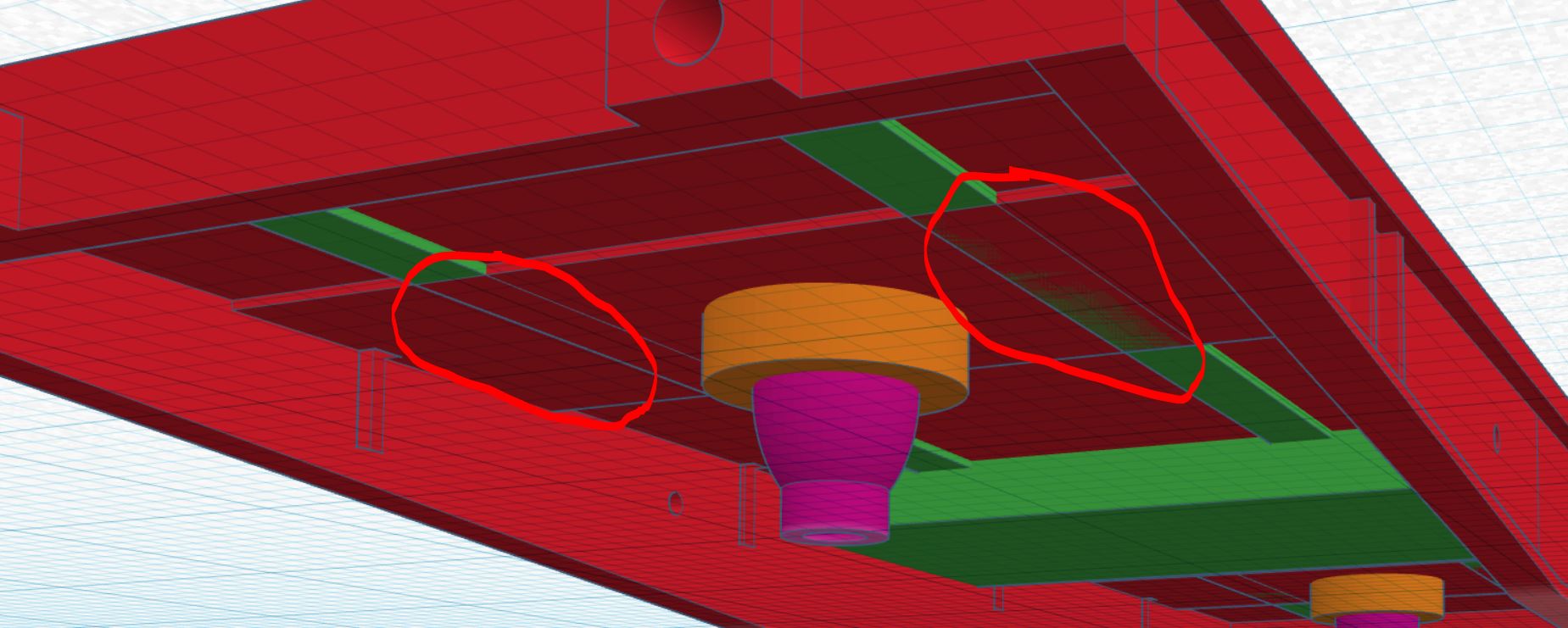 Car je me suis rendu compte vraiment hier matin que j'aurais du mettre des supports dans les deux rond rouges afin que le boogie n'est pas trop de gite