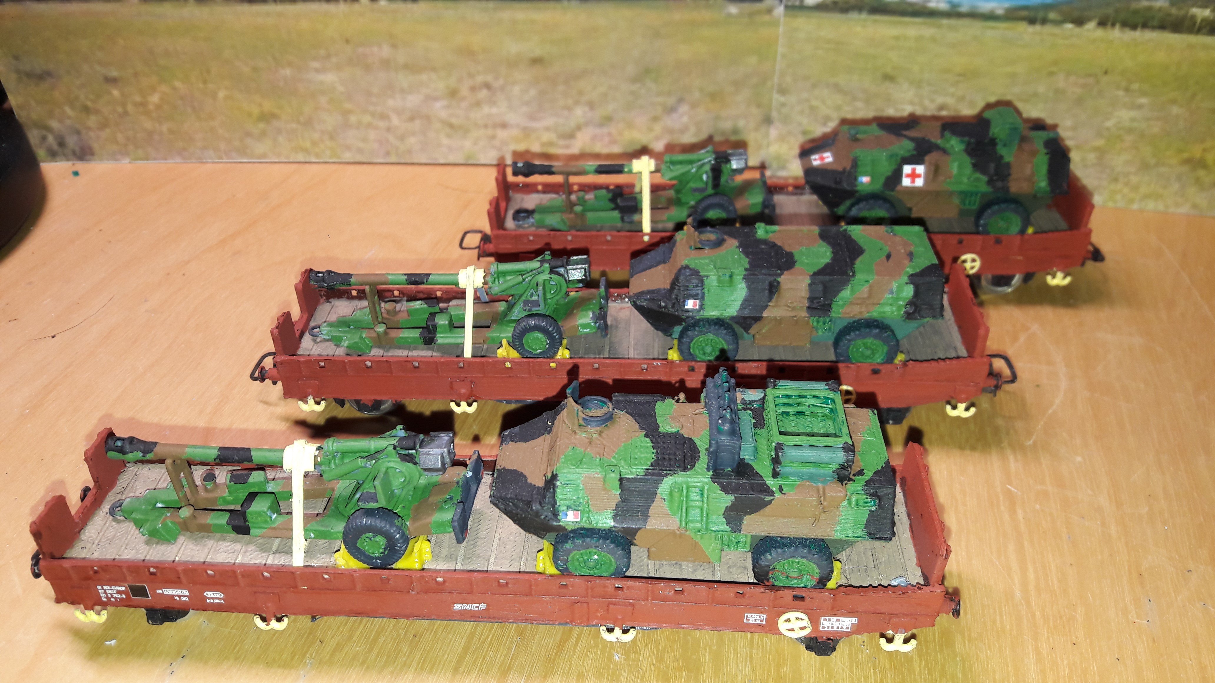 Hélas il faut d'autres wagons pour les Leclerc ; je confirme ; mais faute de grives... De toute façon déjà avoir les chars n'est pas évident ; alors mes AMX et mes wagons plats ont encore de beaux jours devant eux. :/