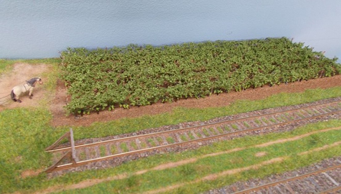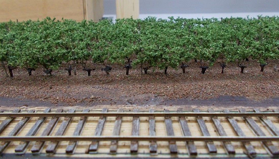 Retour d’expérience : en effet, le zeeschium trempé dans de la brou de noix avec de la glycérine rend ce dernier élastique tout en le teintant. En fonction de la dilution de la brou, les rameaux seront plus ou moins sombres. J’ai floqué les brins et commencé à coller ceux-ci en place. Un activateur de colle cyano permet d’avancer assez vite. Malgré cela, il faut faire très attention à ne pas arracher les fils tendus entre les poteaux. C’est chronophage certes mais je pense que le résultat sera sympathique.