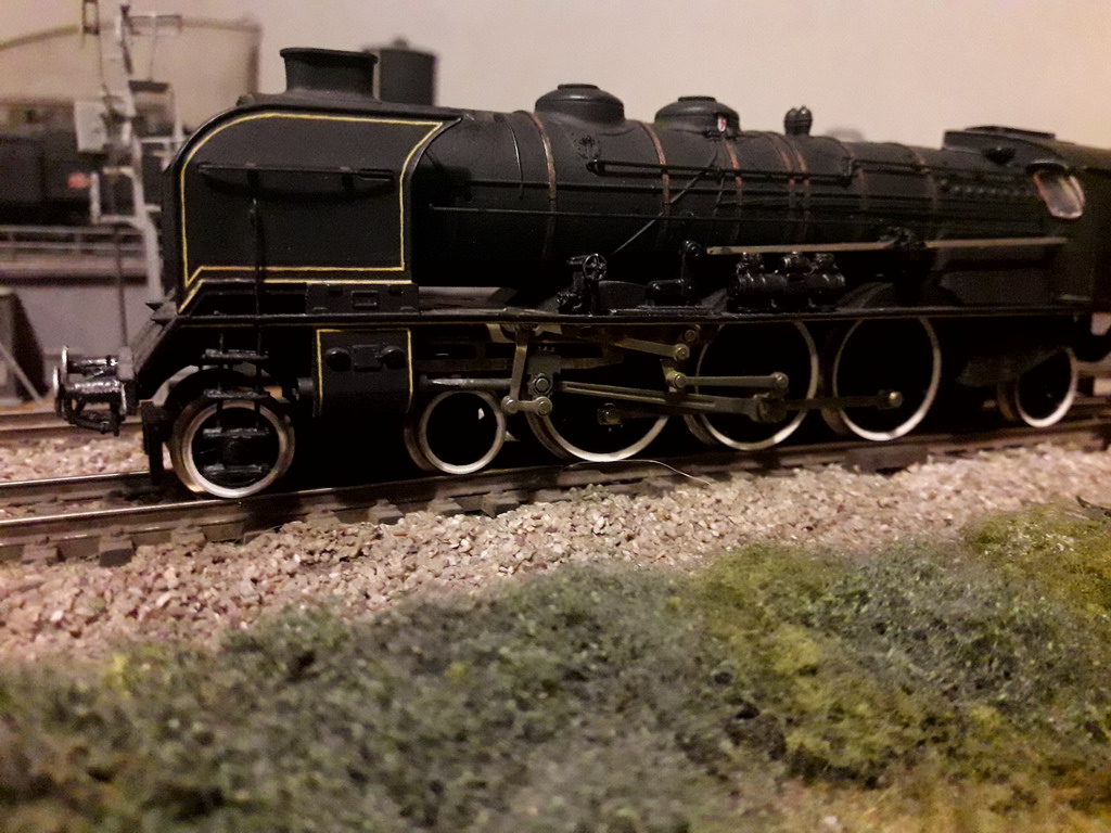 Stand by dû à la chute de ma 141 R 1264 dont la remise en état a demandé du temps et des opérations de maintenance du réseau. Je vais reprendre la suite de cette Pacific. Voici ma R réparée; j'en ai profité pour améliorer les graisseurs Natan tirés de boites d'essieux à rouleaux et les biellettes du mouvement d'un restant de kit.: