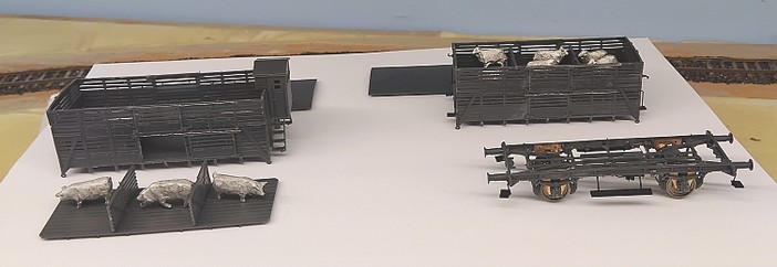 - Je suis en train de monter 2 wagons pour le trans port d’animaux en plastique. Il y aura une version SNCF et une autre AL. Les pièces sont très bien conçues mais au niveau de la notice, il faut être un peu attentif pour ne pas se tromper. Les lests seront des moutons et des cochons en métal blanc.