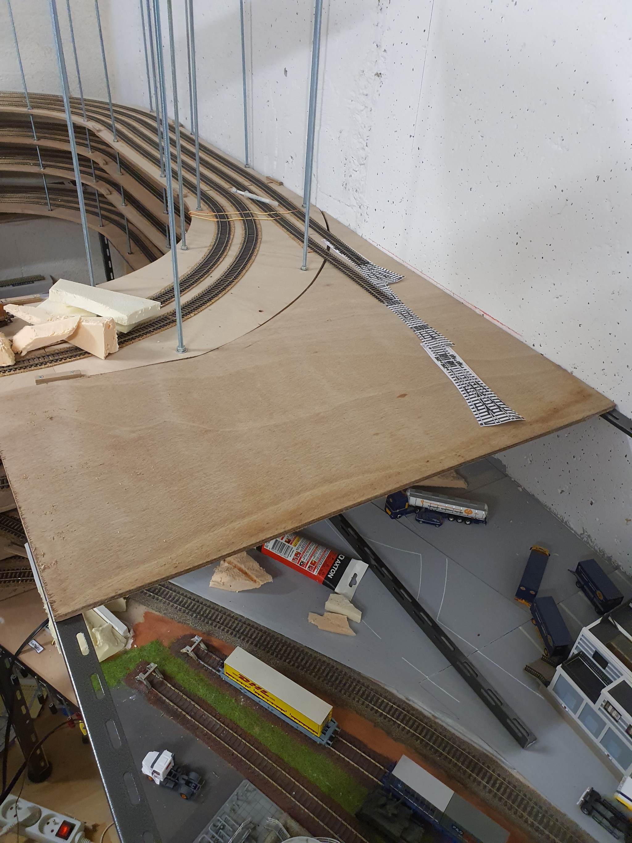 Sinon avant d'avancer le dessus j'ai pas d'autres choix que de finaliser le décor, ballast, ... sur l'étage inférieur