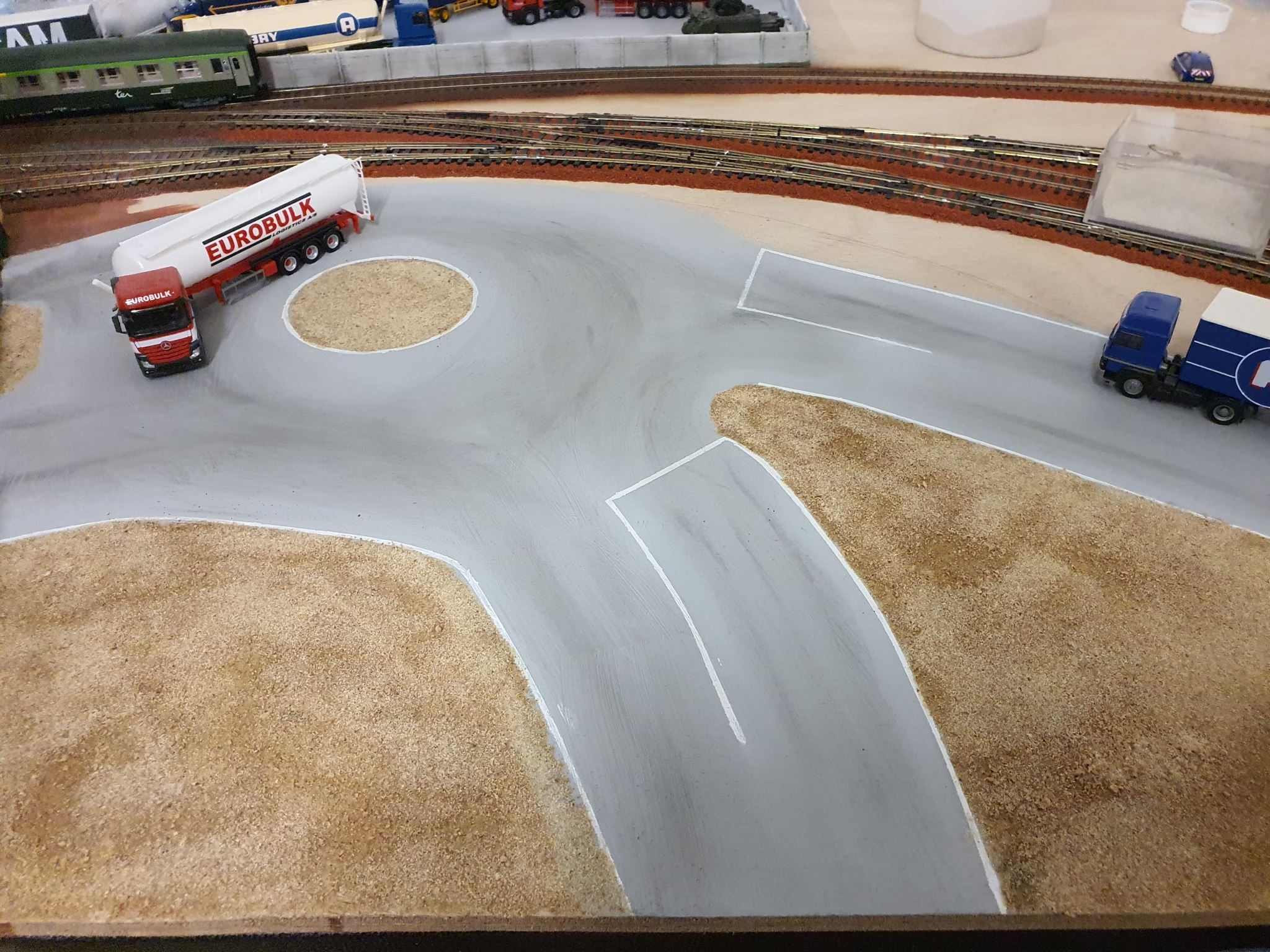 On ferme le coin du réseau avec un pré et une route bordant les rails