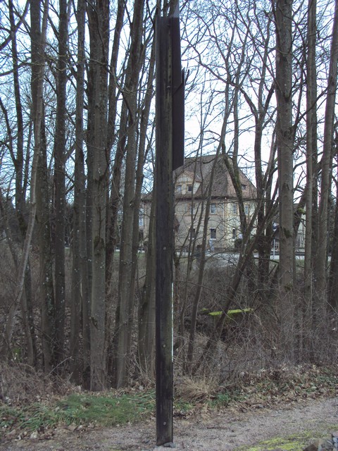 Je suis allé à Burnhaupt pour voir sur quoi étaient fixés les panneaux. En plus de poteaux béton, l'emploi de rails est courant. Il comporte une bande de sécurité blanche. Je vais reproduire cela pour les chevrons.