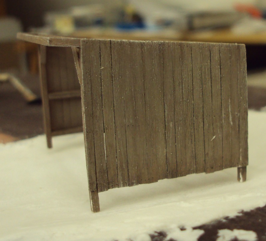 En fin de compte, cette cabane est trop grande et trop neuve. Je la garderai pour meubler la cour d’une des maisons de Lauw. Je dois encore accentuer la séparation des planches et patiner aux terres à décor.