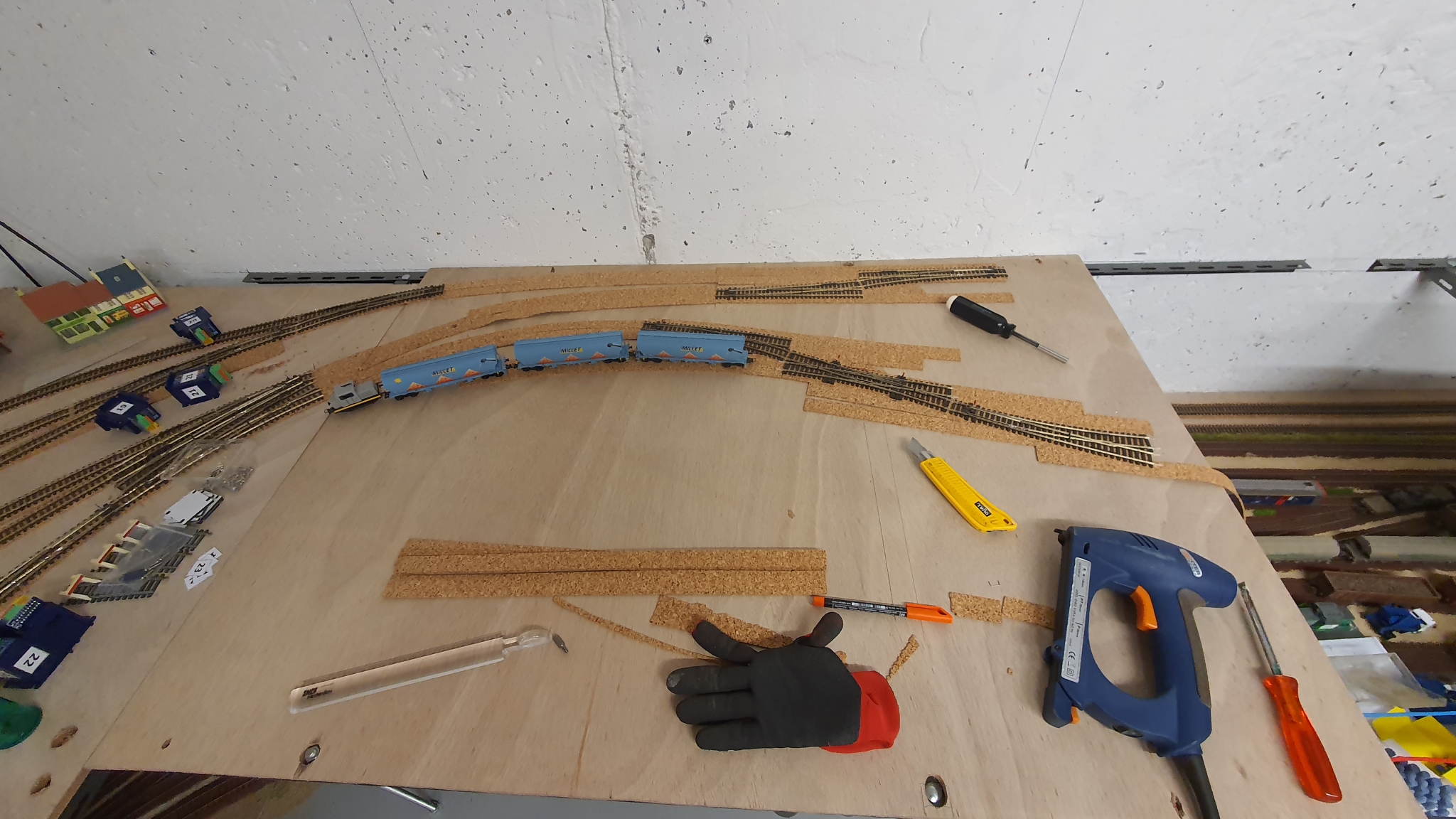 Du coup j'ai mis la planche plus petite en longueur et j'ai positionné les aiguillages. Ainsi c'est quand même beaucoup plus facile.