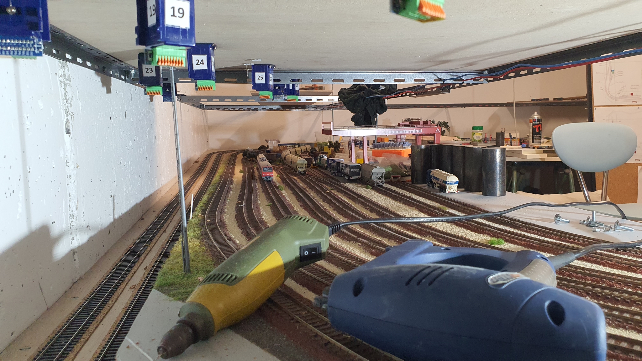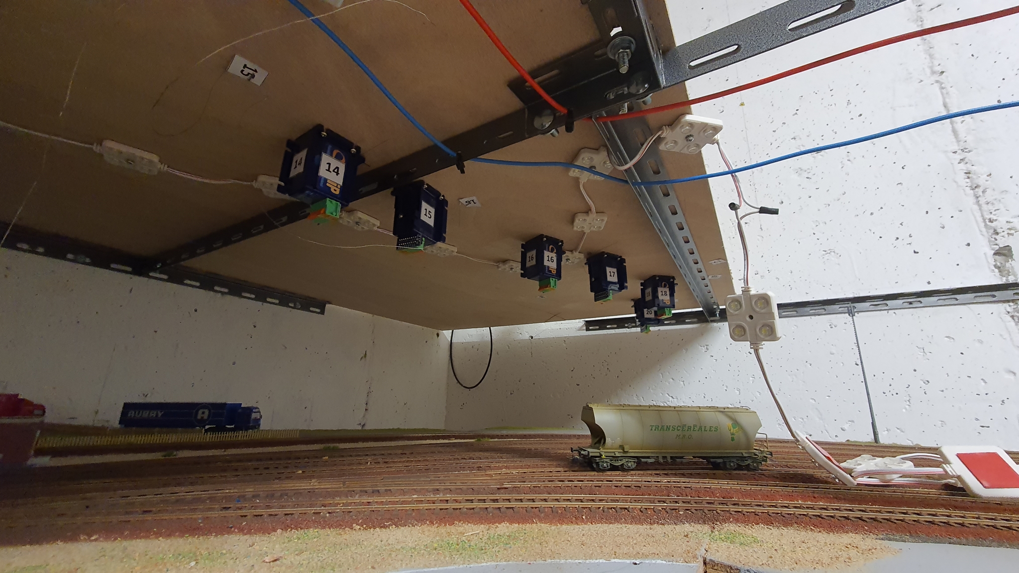 Et enfin comme j'ai du visser un moteur qui était sur la partie planche supportant la gare, j'ai du me tordre un peu pour passer sous le réseau et aller au coin. J'en ai profiter pour faire ces deux photos en l'état je l'admet mais.