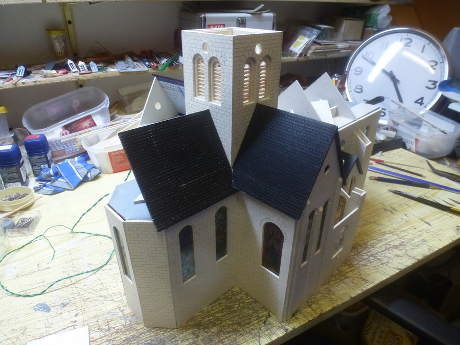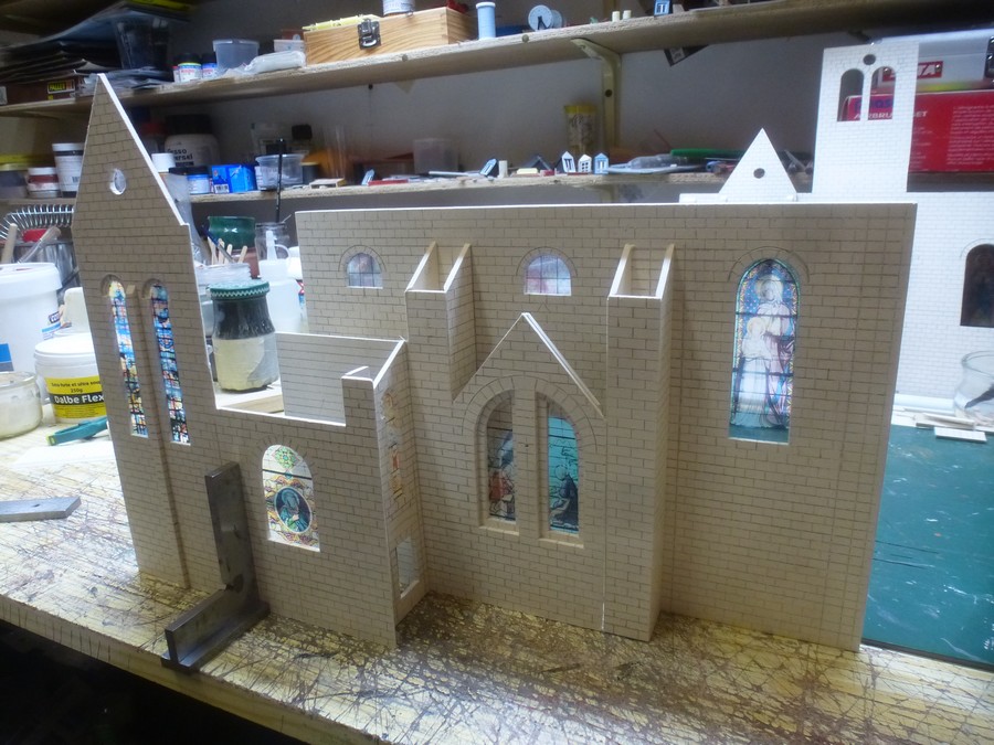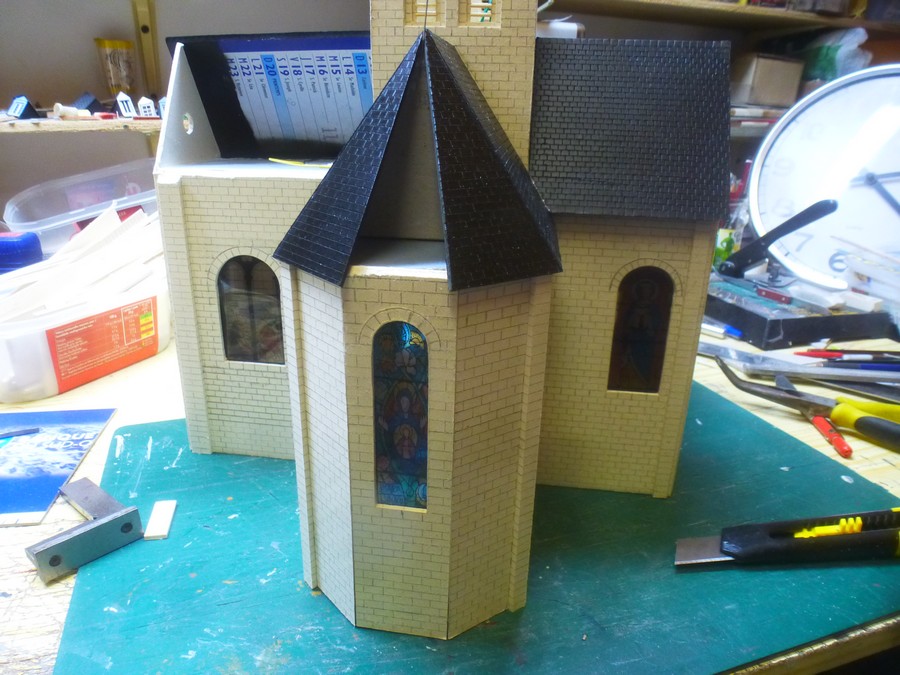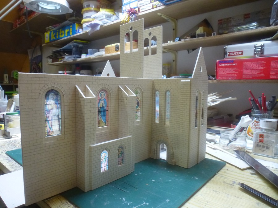 dimensions de l'église construite suivant la place disponible (toiture du local en pente
