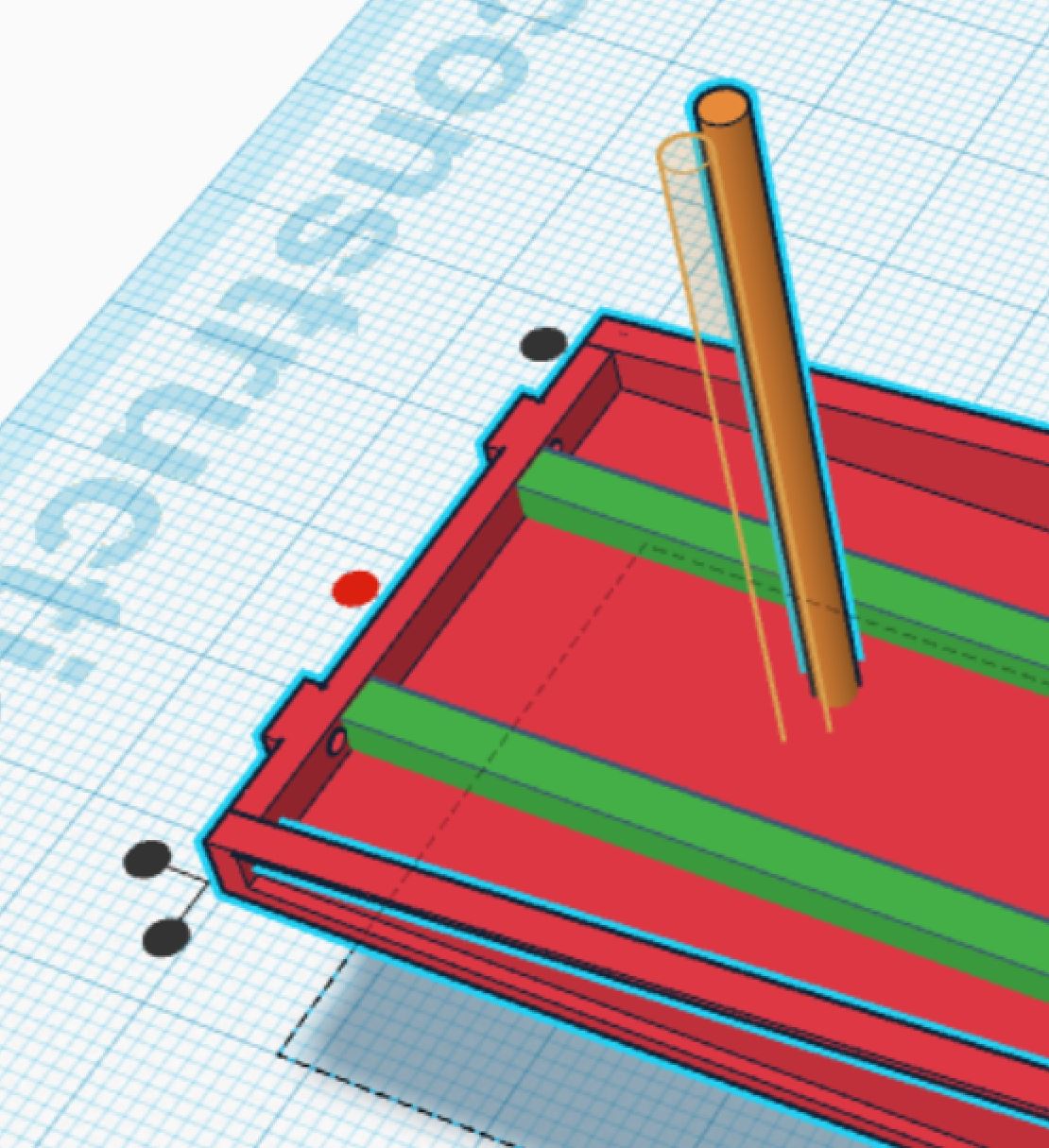 Puis on fait traverser le tout par deux barres qui ne sont pas en couleur. Pourquoi sont-elles transparentes et bien car en assemblant le rouge et le transparent, le deuxième va créer un vide et donc offrir le trou pour ensuite mettre le tampon