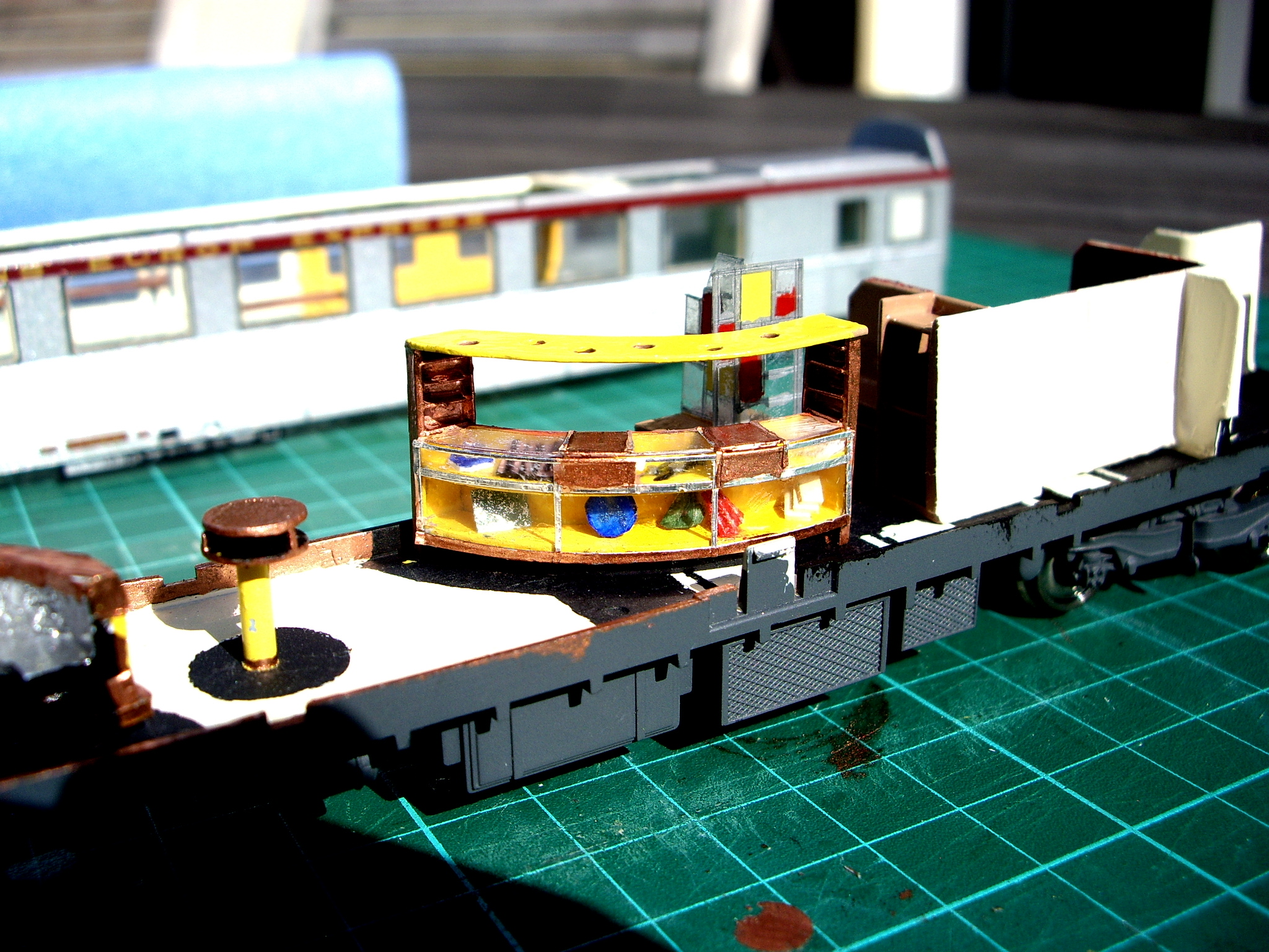 Il y aura bien des leds à l\'intérieur de cette voiture , y compris dans le kiosque: les trous des spots sont en attente de leds cms ou plcc.