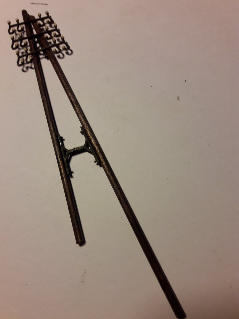 les poteaux sont pourtant bien Français ils sont construit dans la Manche à partir de brochettes provenant du département 32, par contre il manque pas mal de détails dessus en premier les clés supports des fils, pour l'instant je sèche.