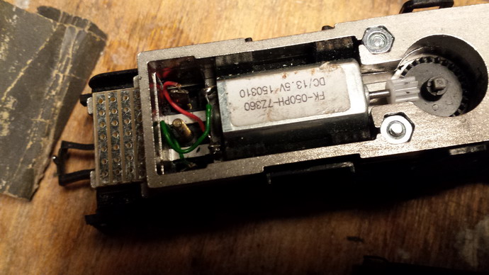 Bon aux essais elle ne décolle pas les 9 voitures et un fourgon en rampe de 20. avec 7 c'est bon. Il semble que le tender se cabre à l'effort. l'iprod répond mal au courant pulsé avec des saccades n'influençant pas sur le ralenti (comme la 232U et 231C équipées) . Surprise, le moteur est monté d'origine à l'envers: inversion des pôles! Redémontage