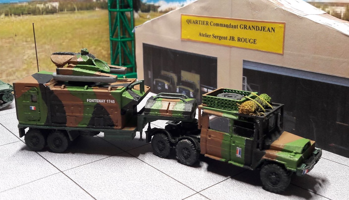 Comme je l'ai mis dans ma présentation je suis aussi amateur de train et de matériel militaire français. Face à pauvreté de l'offre commerciale, j'ai pris l'option de réaliser moi-même mes engins. Après un très rapide essai au Scratch (Quelle galère...) je suis passé à la 3D, en filaire au début puis il y a un an ajout de la résine.