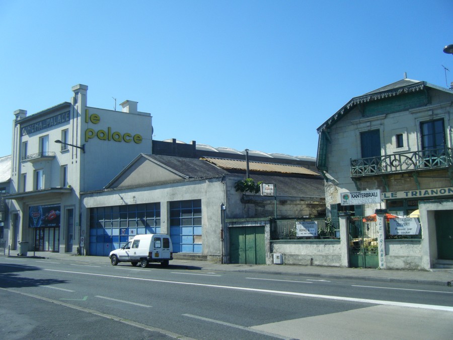 .entre le cinéma et le restaurant il y-avait un hangar pour des cars .