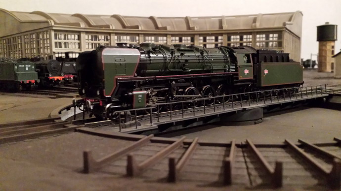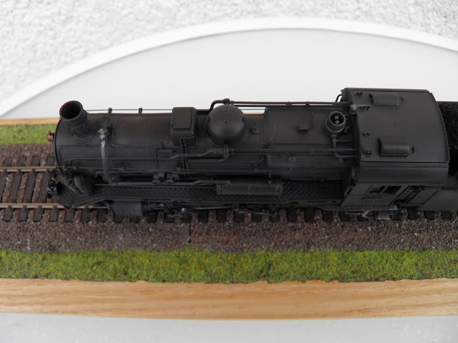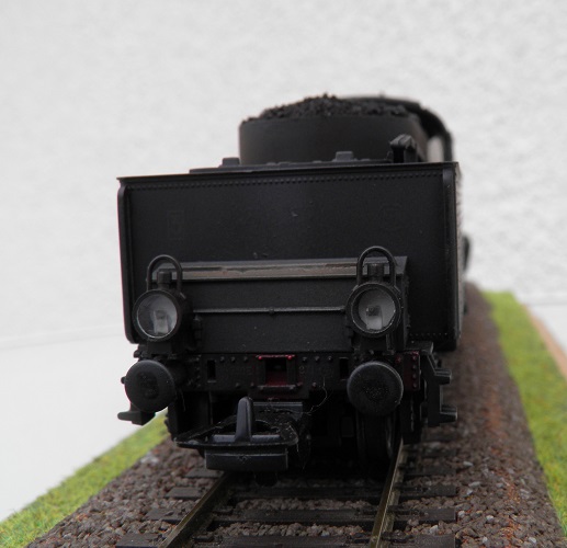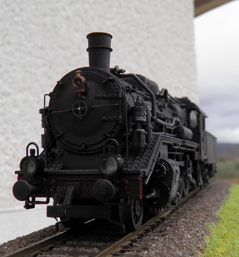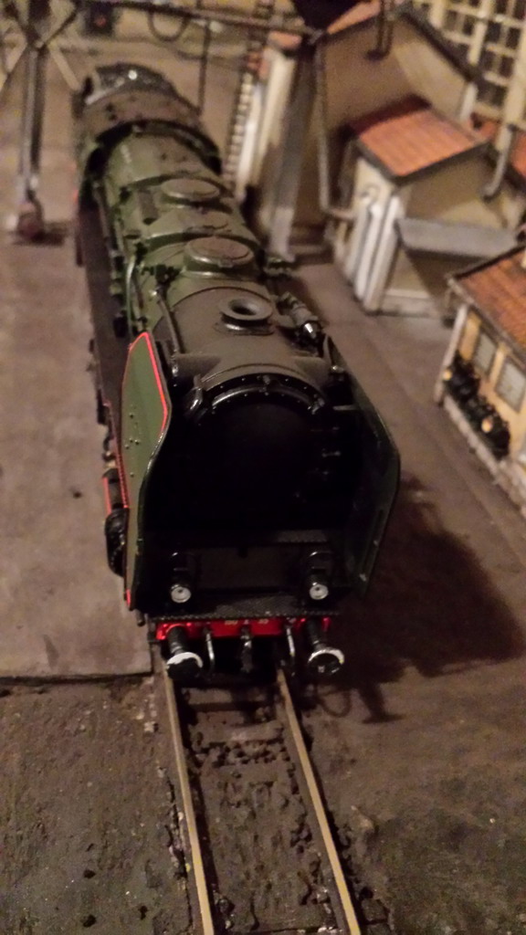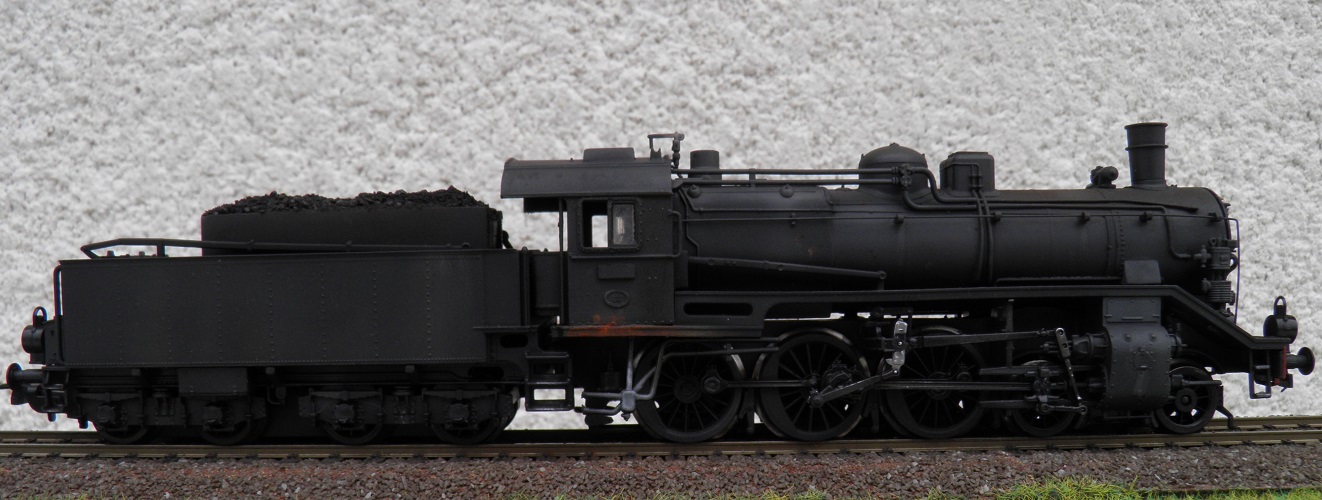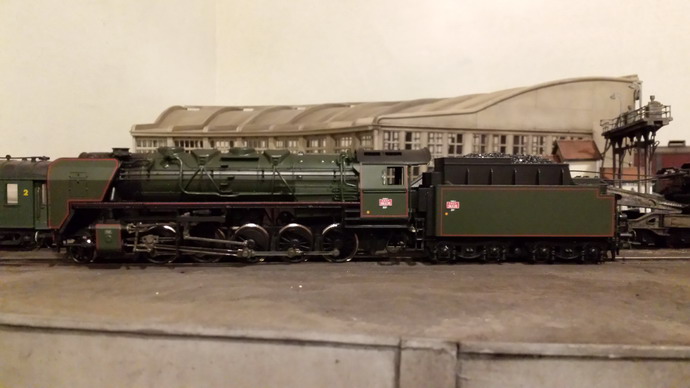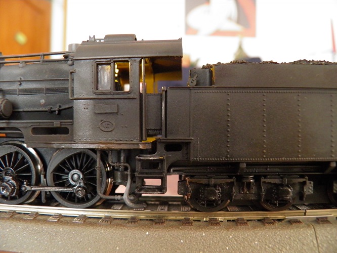 Suite de la 150X35 ROCO....patine légère type sortie de révision récente avec reprise du filet de rive trop épais. Evidemment le traitement habituel : lavis de peinture sur les bielles, charbon sur la hotte du tender et terre à décor noir de fumée.