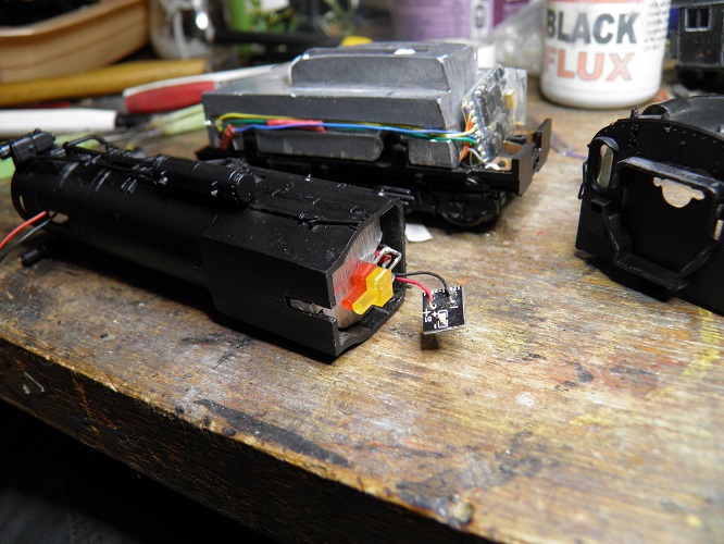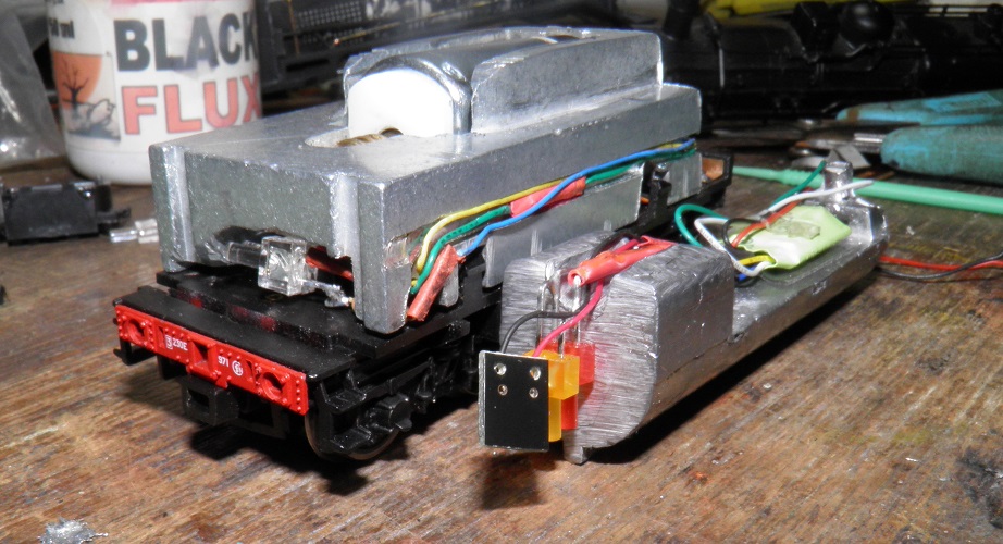 le lest du tender a ete fraisé ,torture a la disqueuse ,le but etait de separer le decodeur du moteur (eviter la chaleur du moteur ) .