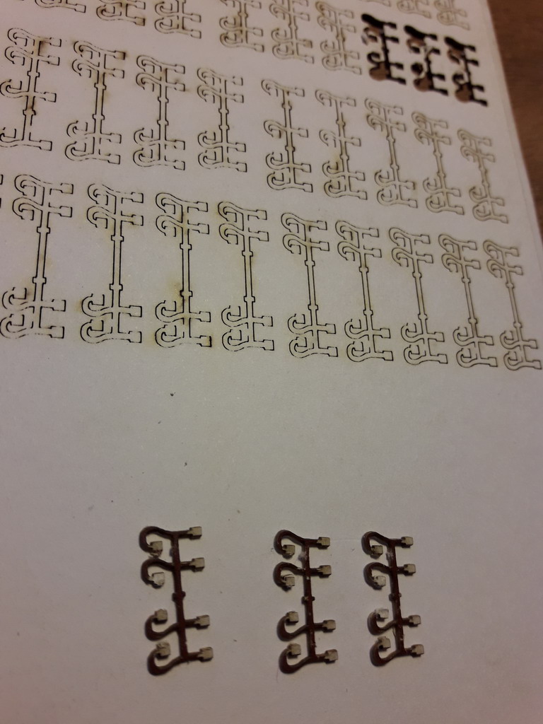 La découpe des ergots qui tiennent les pièces en carton en découpe laser est quand même délicate.