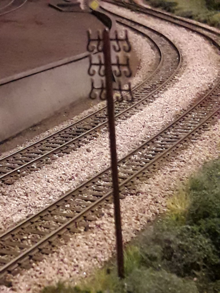 Comme j'ai aussi une grande courbe sur mon second module, je suis aussi en train de réfléchir si des poteaux télégraphiques ne seraient pas un plus. Même problème avec ou sans fil ? J'avais testé le fil EZ-Line pour la commande funiculaire de mes aiguillages. Il était très pratique.