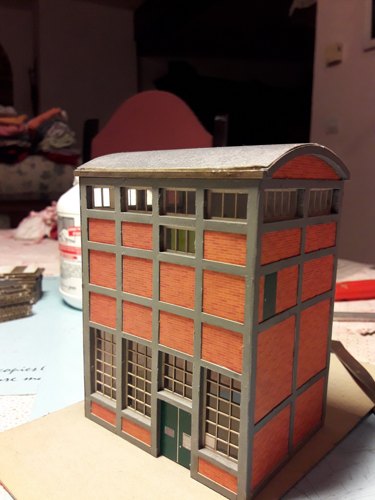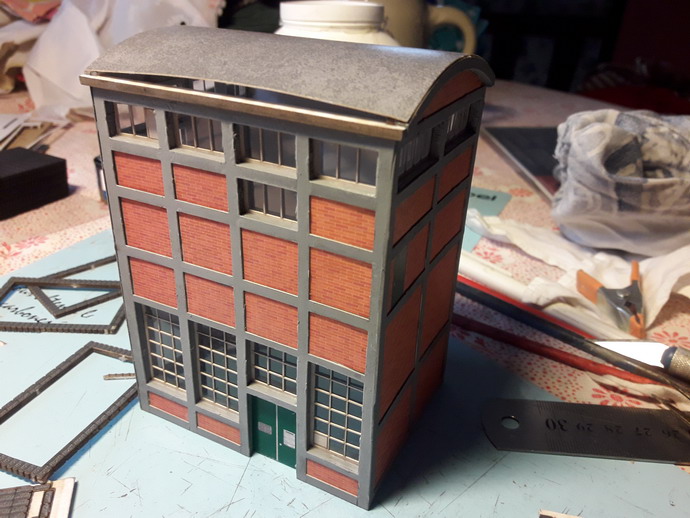 Le résultat final est assez décevant. L'ajustage n'est pas évident même au prix de corrections, les défauts restent et le carton reste un matériau fragile qui ne se travaille pas. la patine reste à appliquer et va en masquer l'essentiel. Je pence enduire les parties qui montrent des écarts trop voyants dûs aux couches successives de carton. Comme c'est en fond de décor cela ira après patine.