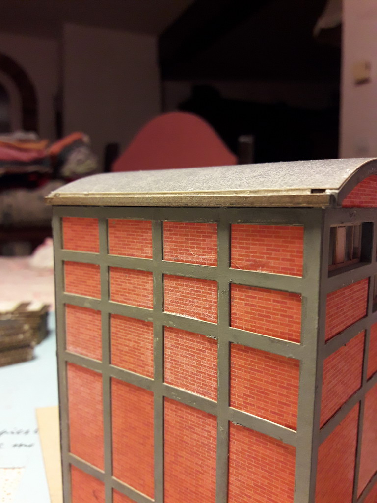 C'est la galère pour ce kit...Les façades montrent une forme convexe à la mise en place des balcons. Un voile de vernit mat a été appliqué sur le toit: