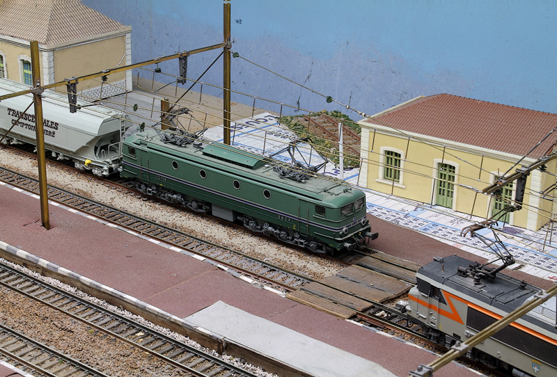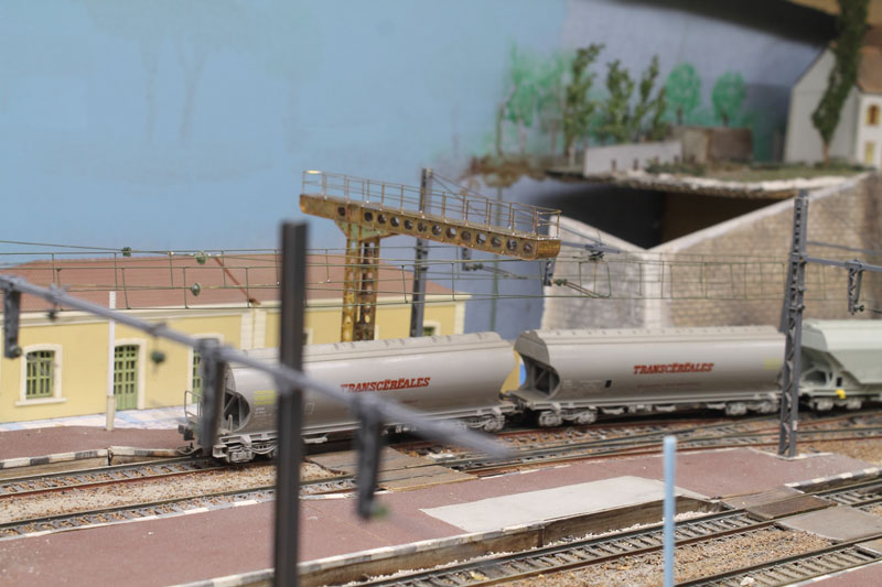 Il est 16h35, le train numéro ......('je n'ai pas mes tableaux horaires sous la main) en provenance de Hauffon sur la voie unique non électrifiée vient d'arriver en gare voie 6. C'est un train de céréalier plein, 22 véhicules, 1823 tonnes, 378 mètres. l'UM de 67400 va être coupée pour laisser place à une machine électrique qui l’emmènera à Laroche Kigennes. Pendant ce temps sur voie 2 un train sans arrêt passe Mézi 26023 en tête.