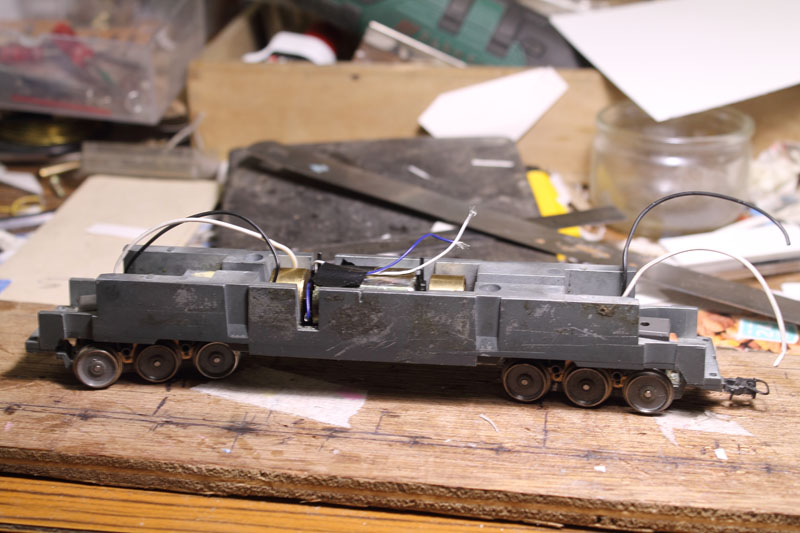 J'ai également recâblé un châssis jouef acheté d'occasion qui théoriquement était fonctionnel avec le nombre de fils dessoudés j'ai des doutes on va dire que c'est le transport.