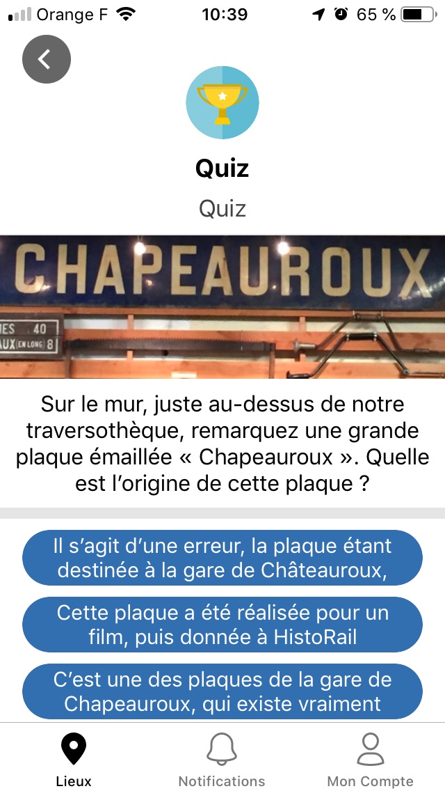 Désireux d’offrir une plus grande interaction avec les visiteurs de tous âges et de toutes origines, le Musée HistoRail offre aussi aux visiteurs la possibilité de jouer, en famille ou entre amis, avec vingt questions disponibles sur l’application Imagina, au fur et à mesure de l’évolution du parcours de visite. L’occasion de sympathiques échanges, faisant appel à toutes les ressources disponibles, soit dans les collections du Musée, soit dans la mémoire de chacun, afin de découvrir en s’amusant quelques spécificités du monde du rail et des voyages en train !