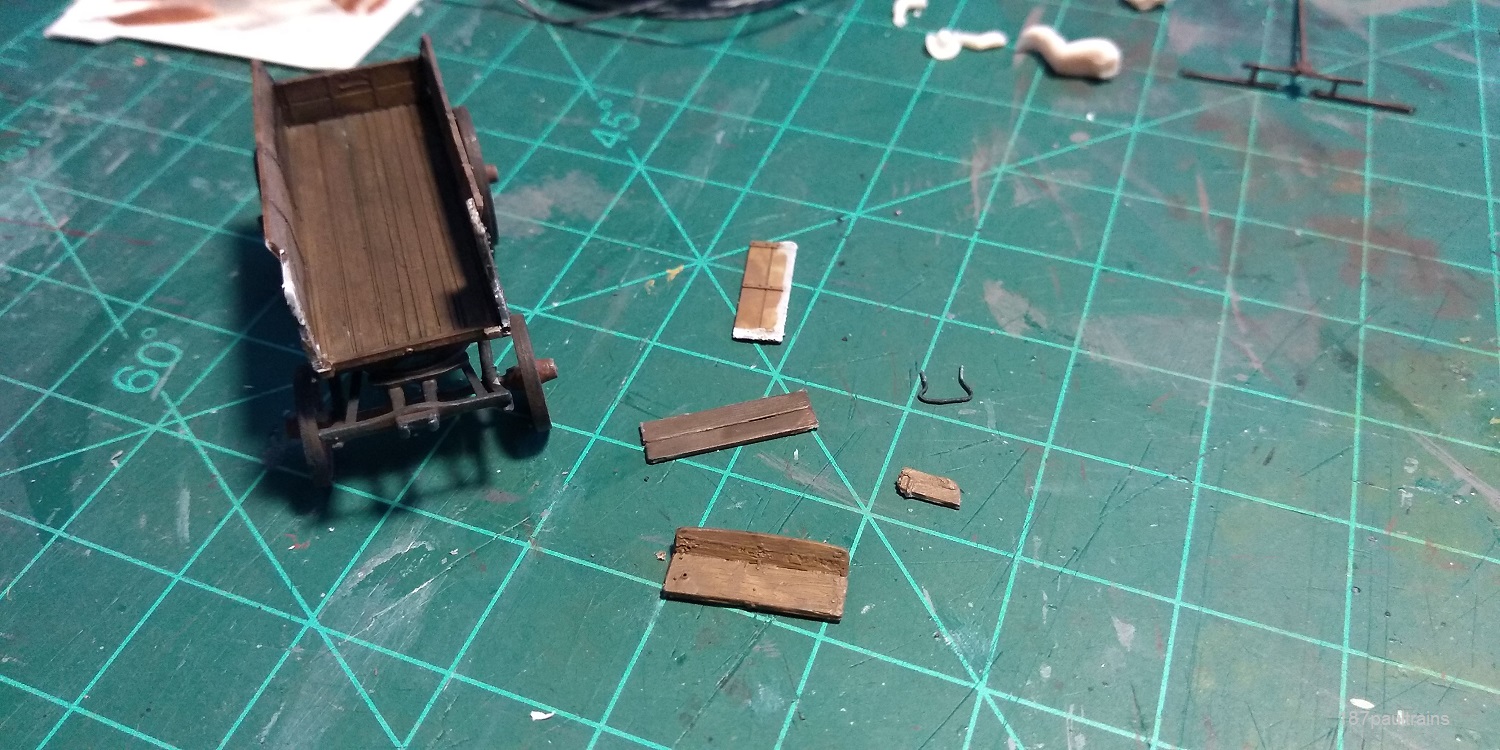 J'ai mis la main sur cette charrette dont l'assemblage était commencé, mais le résultat n'était pas abouti et plusieurs erreurs de montages étaient observées. Donc, mise au rencart. Je me suis penché dessus dernièrement et j'ai décidé de corriger les petites erreurs. Jusque-là, ça donne ça :