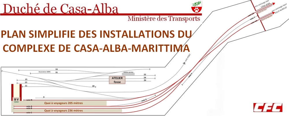 Voici le plan simplifié des installations du complexe ferroviaire de Casa-Alba-Marittima, comprenant :