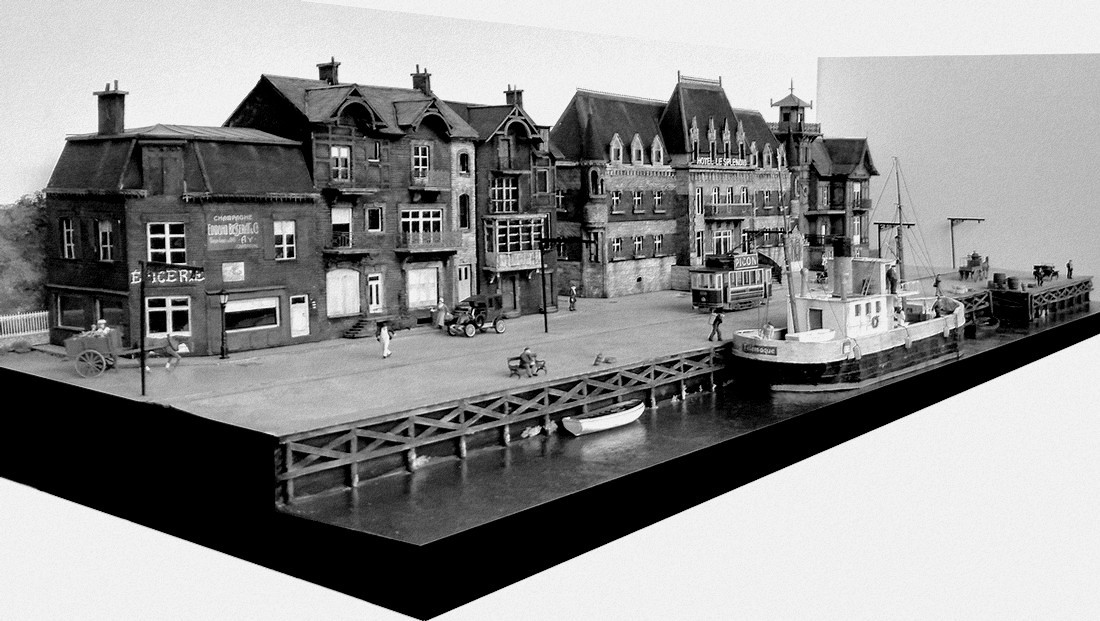 Très joli boulot que ce quai et ces bâtiments, et du coup c'est du découpage à la main ou avec une silhouette ?