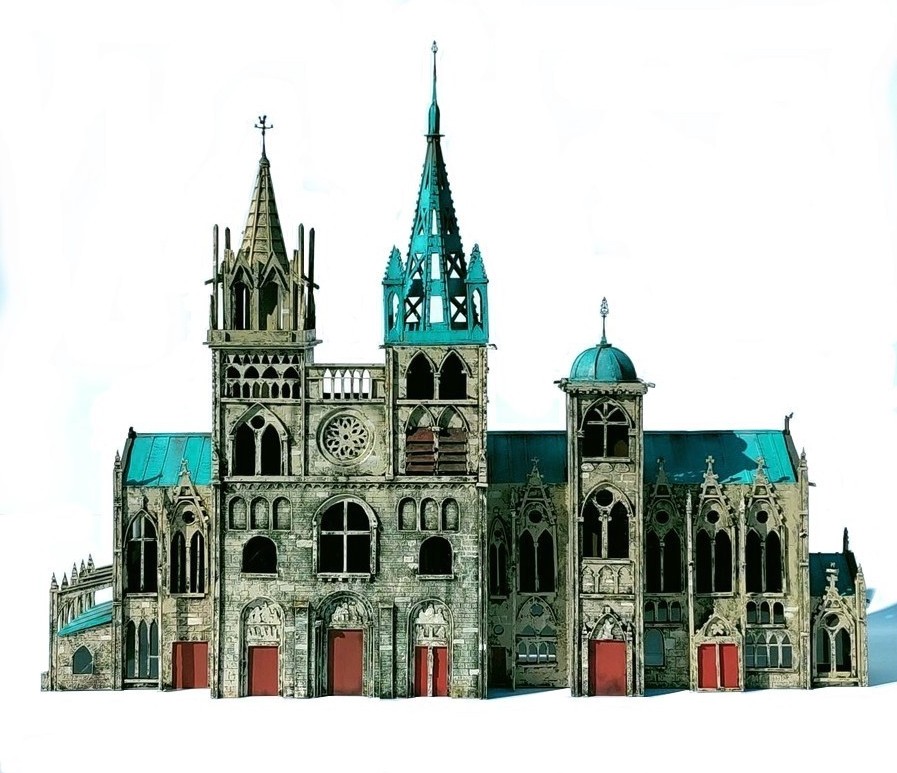 Petite réalisation pour un ami d'une Cathédrale à l'échelle N. Construction en carton et papier et peinture à la gouache :