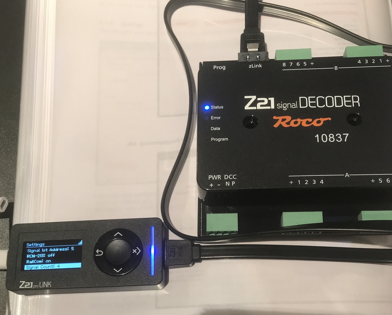 Pour les signaux , faire très attention au pole commun des signaux que vous achetez et la compatibilité des modules de gestion des signaux. Le « + » est le commun chez Roco. Le module gère quatre signaux basiques (un carré par exemple) donc chaque fil du signal remonte au décodeur.