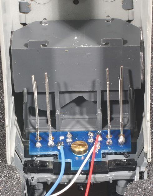 11 – En fin de montage, éclairages des feux et des cabines reliés à la platine principale : tout fonctionne sans programmation particulière avec un décodeur Zimo MX633 P 22.