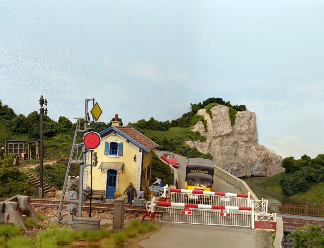 Miniature Flash pour mieux les situer. La réalisation de ces passages à niveau illustre bien l’évolution continue du réseau. Lorsque le décor de l’ensemble de celui-ci fut achevé, les passages à niveau étaient purement figuratifs, les barrières oscillantes de l’époque III étant fixes et en position fermée, bien entendu.