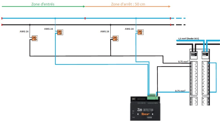 Schéma de câblage du module de détection Roco (Réf. 10808).